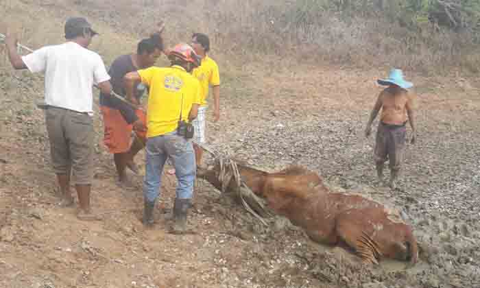 นางสาววีนัส อายุ 42 ปี เจ้าของวัว บอกว่า วัวตัวดังกล่าว ชื่อเจ้าแดง เป็นวัวเพศเมีย ลูกอ่อน ขณะที่ตนเอง ได้นำวัว ทั้งหมด 10 ตัว เลี้ยงอยู่บริเวณทุ่งนาท้ายหมู่บ้าน เจ้าแดง วัวเพศเมีย ซึ่งเป็นวัว แม่ลูกอ่อน เพิ่งคลอดลูก ได้เดินลงไปกินน้ำ ในสระน้ำ แต่ ในระหว่างที่กำลังเดินลงไปกินน้ำ พบว่า ถูกโคลนดูด ทำให้ไม่สามารถช่วยเหลือตัวเองขึ้นมาได้