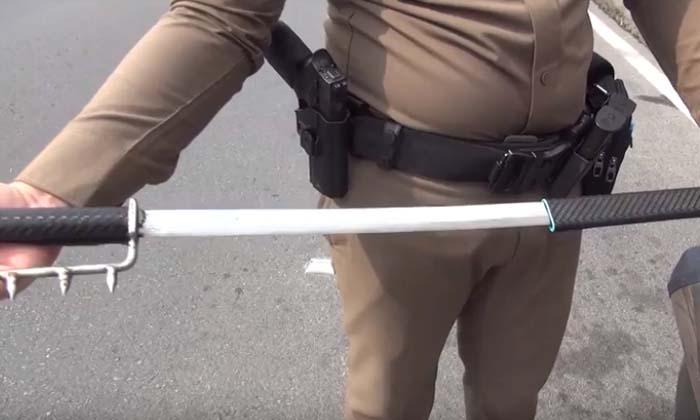 พกมีดมาด้วยเหรอ? จับ 3 วัยรุ่นแว้นรถไม่ติดแผ่นป้าย-เหน็บมีดดาบอ้างป้องกันตัว