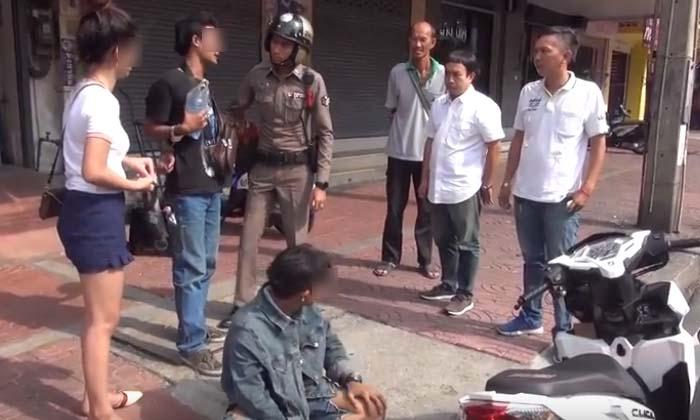 ทำให้ทางตำรวจผ่านมาพบและเรียกลงข้างทาง ริมถนนสุขุมวิท ตรงข้ามวิทยาลัยอาชีวะชลบุรี ตำบลบ้านสวน อำเภอเมือง จังหวัดชลบุรี
