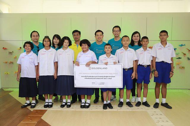 CLASSROOM MAKEOVER โครงการสร้างองค์ความรู้และพื้นที่การเรียนรู้สำหรับเด็กผู้พิการทางสายตา โดยที่มาของโครงการอยู่บนพื้นฐานแนวคิด Developing the Best ซึ่งเป็น tagline ที่สะท้อนปรัชญาการทำงานของโกลเด้นแลนด์ ที่ตั้งใจจะพัฒนาและมอบสิ่งที่ดีที่สุดในทุกๆ เรื่อง โดยการเข้าไปพัฒนาพื้นที่การเรียนรู้สำหรับกลุ่มผู้พิการทางสายตาครั้งนี้เป็นการคิดพัฒนาแบบองค์รวม เพื่อเสริมสร้างพัฒนาการด้านการเรียนรู้ของเด็กอย่างเต็มที่ และถือเป็นห้องเรียนตัวอย่าง เพื่อให้โรงเรียนผู้พิการทางสายตาทั่วประเทศสามารถนำหลักสูตรนี้ไปปรับใช้ได้ สำหรับโรงเรียนต้นแบบที่โกลเด้นแลนด์เลือกพัฒนา คือ โรงเรียนสอนคนตาบอดพระมหาไถ่พัทยา จ. ชลบุรี