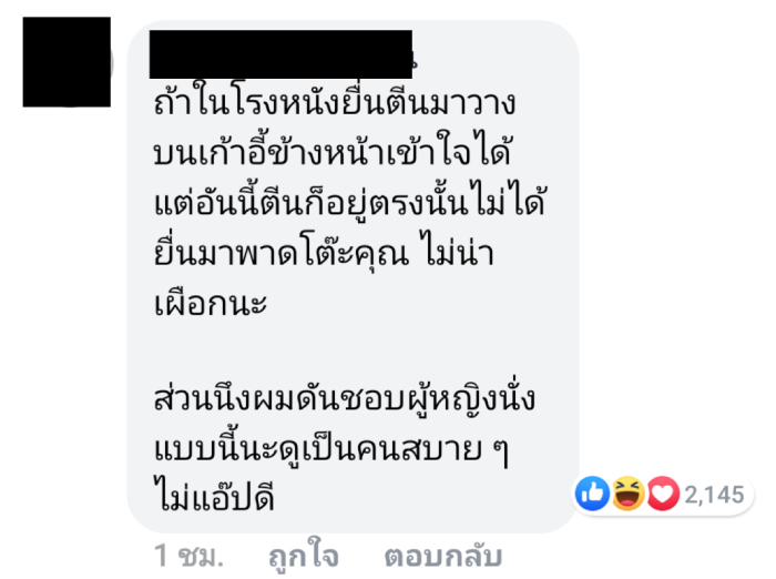 ขณะเดียวกัน หลายคนก็แนะนำให้ผู้โพสต์สนใจกับเรื่องของตัวเอง และการที่ผู้อื่นจะนั่งเช่นไร ก็ไม่ใช่สิ่งที่ควรใส่ใจนัก ตราบใดที่คนๆ นั้นไม่ได้นั่งขวางหรือสร้างความเดือดร้อนให้กับคนอื่น