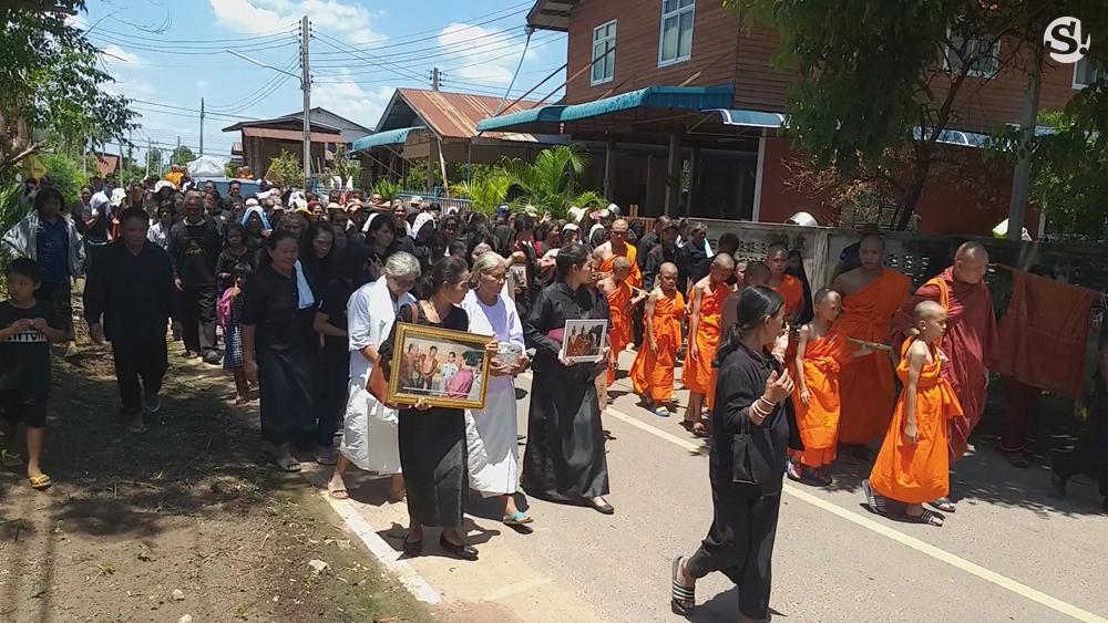 ทั้งนี้ ก่อนที่จะมีพิธีฌาปนกิจศพดังกล่าว ครอบครัว ญาติพี่น้องและชาวบ้าน ได้มีการจัดขบวนแห่เคลื่อนศพคุณตามิว หมอสะดำช้างรุ่นสุดท้าย มายังวัด โดยมีขบวนดนตรีโยธวาทิต ของเด็กนักเรียน และเดินนำขบวนเคลื่อนศพด้วยช้างนับ 10 เชือก ก่อนจะเคลื่อนศพมาเดินวนซ้ายรอบเมรุลอย 3 รอบ ภายในวัดแจ้งสว่างดังกล่าว