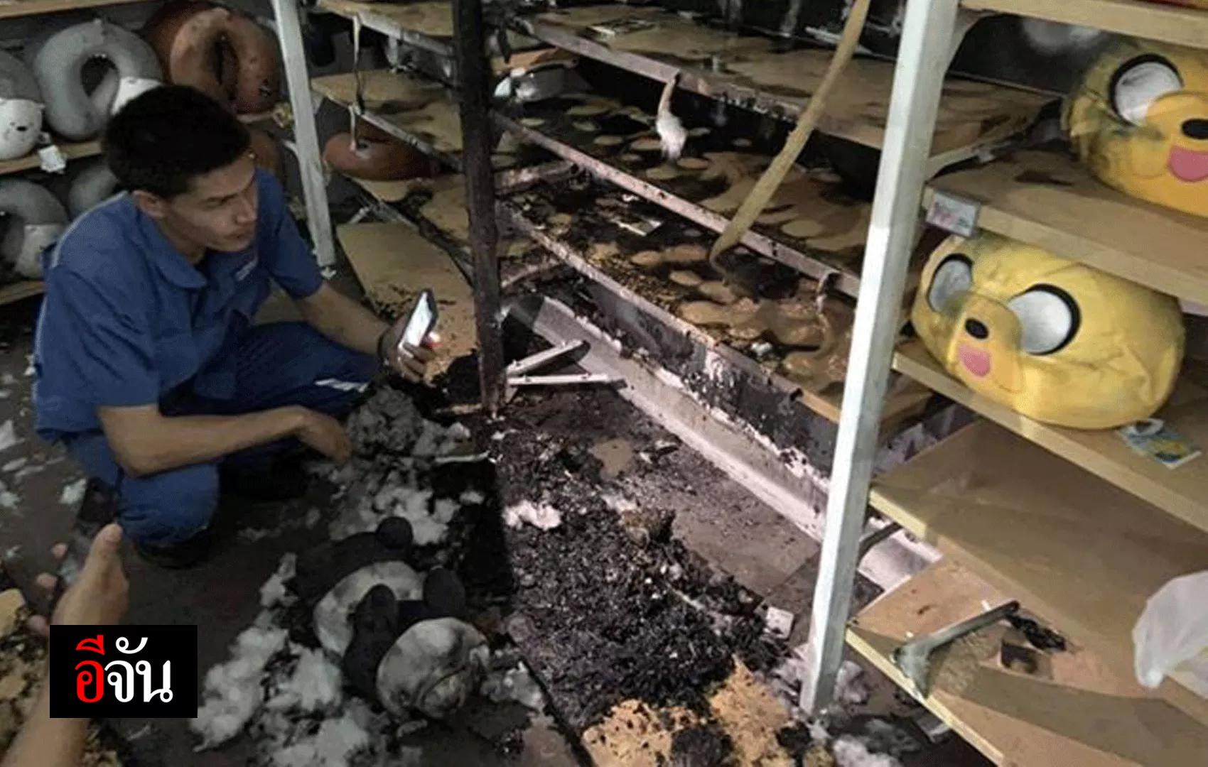 ล่าสุด (3 ส.ค.) เว็บไซต์ อีจัน เปิดเผยว่า หลังเกิดเหตุเพลิงไหม้เป็นวงจำกัดในจุดวางขายตุ๊กตาภายในร้านดังกล่าว เจ้าหน้าที่ตรวจสอบกล้องวงจรปิด ปรากฏว่าพบภาพบุคคลต้องสงสัย
