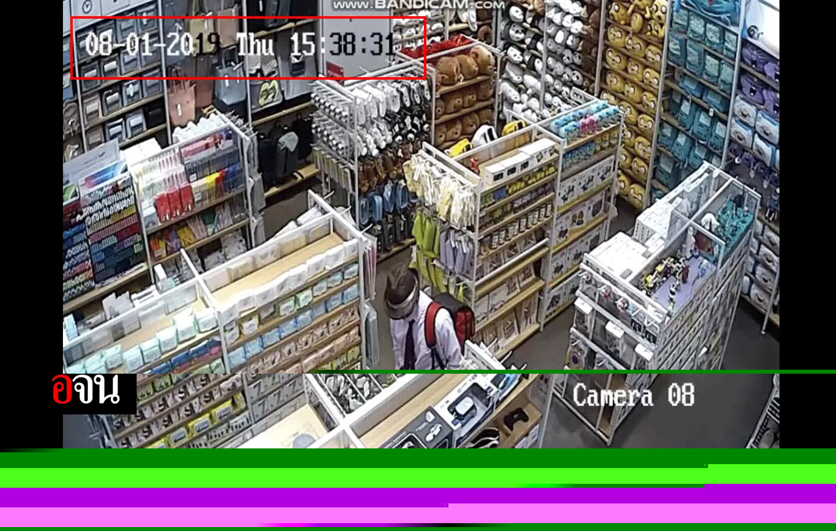 โดยในเวลาประมาณ 15.38 น. ของวันที่ 1 ส.ค.ที่ผ่านมา ตามเวลาในกล้องวงจรปิด พบชายคนหนึ่งสวมหมวก ใส่ผ้าปิดปากบังใบหนา สวมเชิ้ตสีขาว ผูกเนกไทสีดำ สวมกางเกงขายาวสีดำ ท่าทางมีพิรุธ เดินป้วนเปี้ยนอยู่ในร้านที่เกิดเหตุ ก่อนจะเกิดเหตุระเบิดขึ้นในเมื่อวานนี้