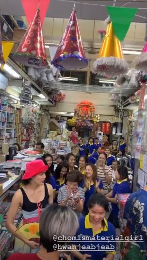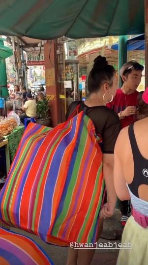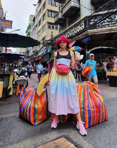 แม่ว่าแม่ได้ "ชมพู่ อารยา" ตะลุยสำเพ็งกับคอสตูมที่ดูยังไงก็เป๊ะแม่ชม เธอมาในธีมสีสันคัลเลอร์ฟลูตั้งแต่หัวจรดปลายเท้าเลยทีเดียว นอกจากนี้แม่ยังมีพร็อพกับกระเป๋ากระสอบสีรุ้งที่เธอสะพายมาใส่ของด้วย
