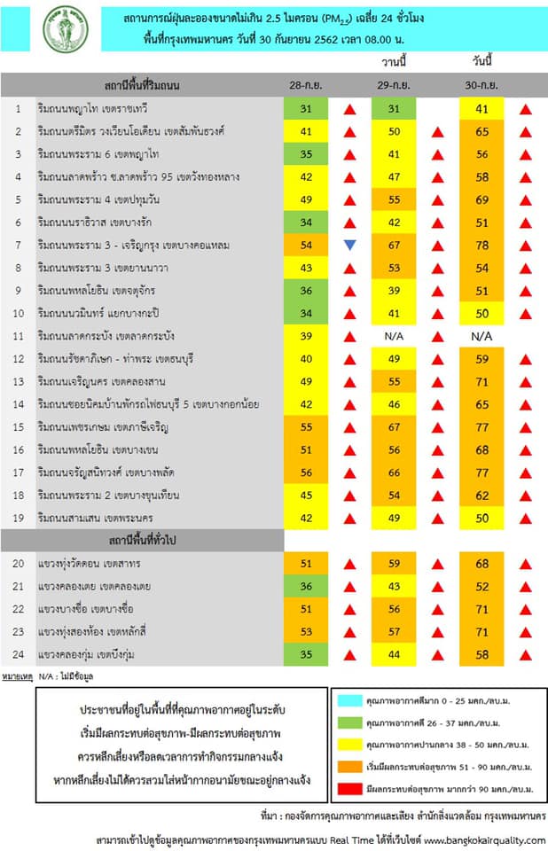 - แขวงพญาไท เขตพญาไท 46 มคก./ลบ.ม. คุณภาพปานกลาง
