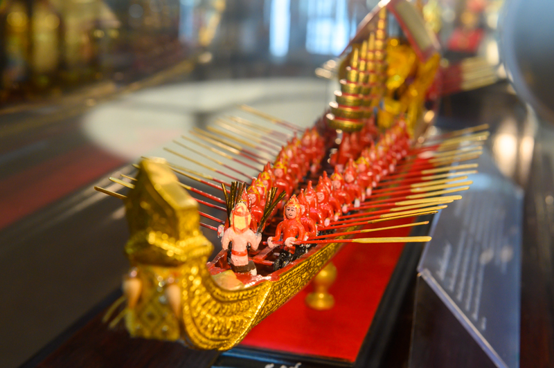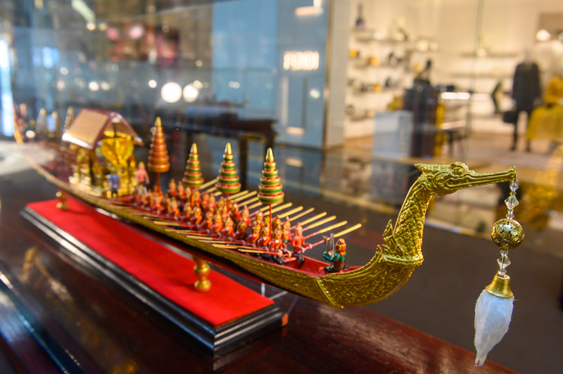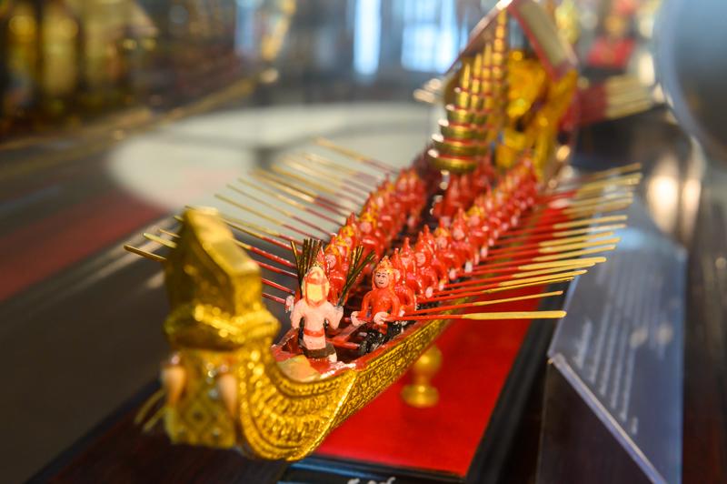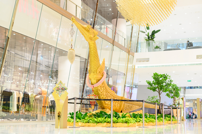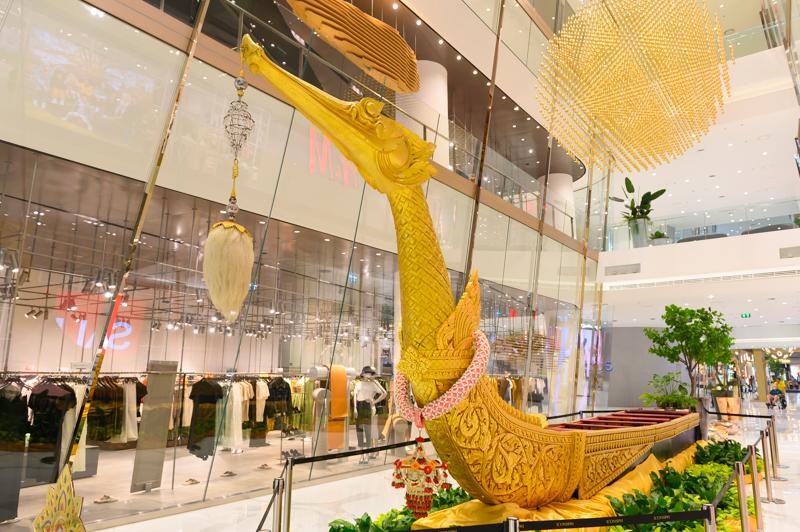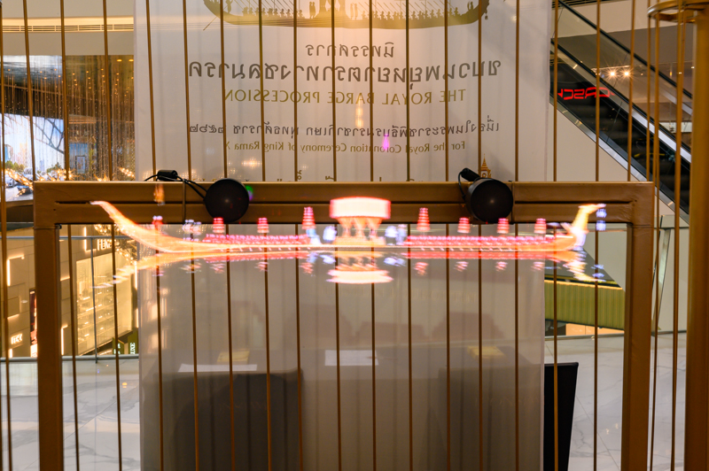 พร้อมกันนี้ยังมีส่วนจัดแสดง “ริ้วขบวนเรือพระราชพิธีจำลอง” ซึ่งจัดแสดงโมเดลเรือพระราชพิธีจำลอง 52 ลำ ที่ได้รับการออกแบบอย่างประณีตงดงาม จัดเรียงในรูปแบบริ้วขบวนใหญ่ พร้อมเนื้อหาประวัติความเป็นมาของเรือย่างละเอียดครบถ้วน โดยผู้เข้าชมสามารถชมได้ที่บริเวณไอคอนลักซ์ อเวนิว ชั้น M โซนไอคอนลักซ์ และชมความวิจิตรงดงามของ หัวเรือพระที่นั่งสุพรรณหงส์ จำลอง บริเวณ ชั้น M ใกล้กับเจริญนคร ฮอลล์