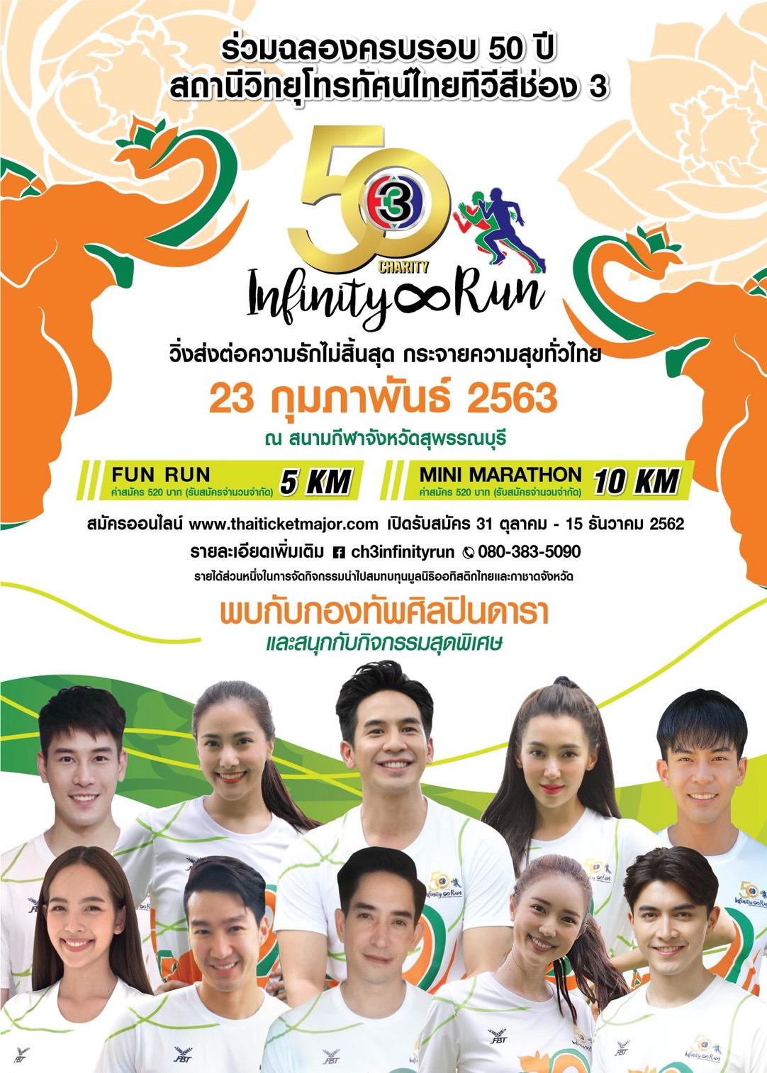 ช่อง 3 จัดงานฉลอง 50 ปี CHANNEL 3 INFINITY LOVE PROJECT ขอบคุณผู้ชมประเดิมกิจกรรมแรกคือ Channel 3 Charity Infinity Run ในคอนเซปต์ วิ่งส่งต่อความรักไม่สิ้นสุดกระจายความสุขทั่วไทย เป็นการรวมพลังคนไทยทั้ง 5 ภูมิภาค