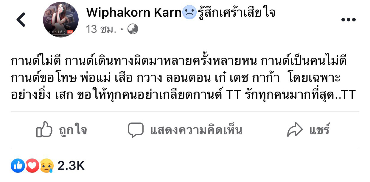 กานต์โพสต์เฟซบุ๊ก