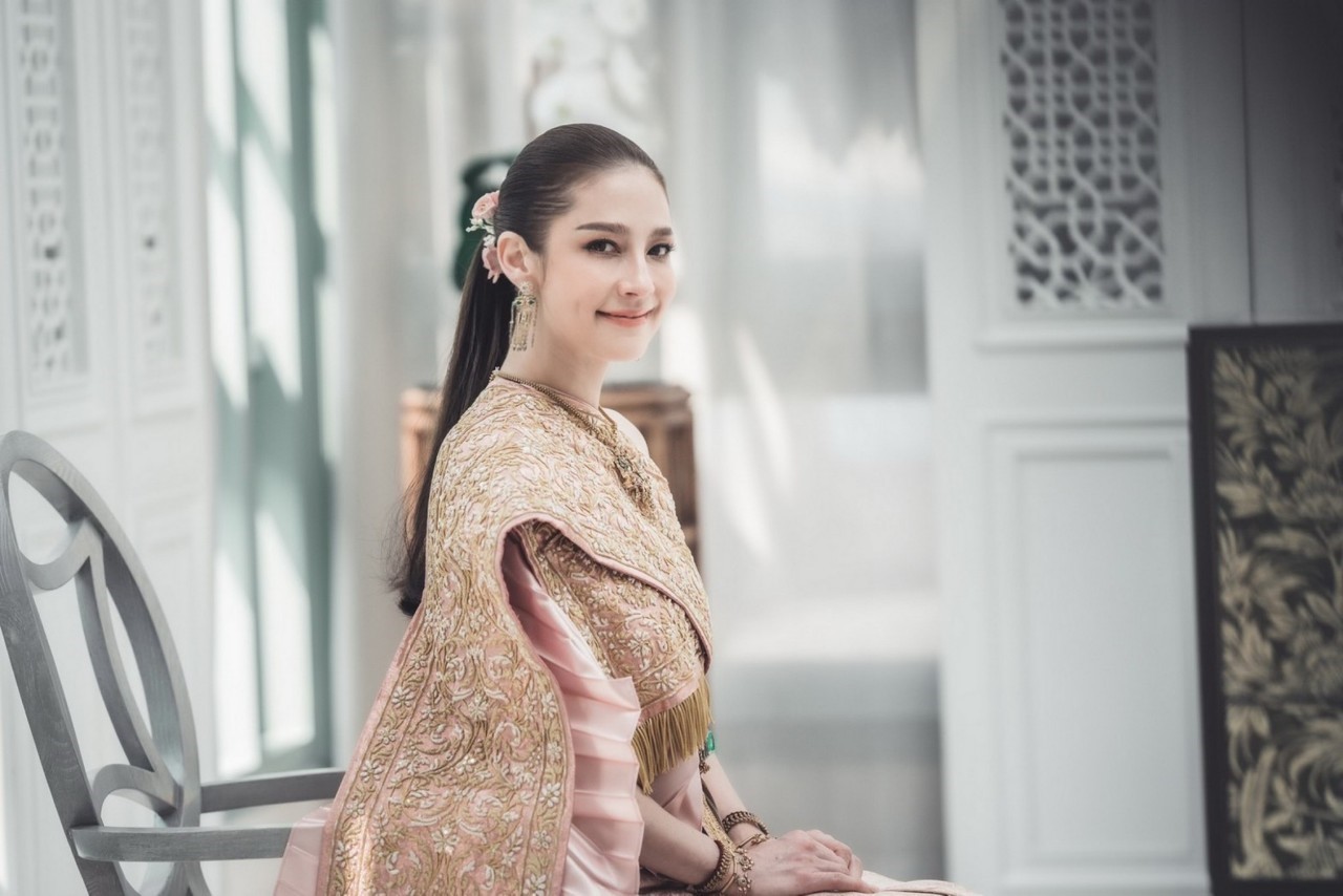 ใช้ผ้าสังเวียนยกทองนุ่งจีบโรย เชิงชักชายพก ห่มสไบจีบชั้นใน ห่มสะพักตาดชมพูปักทองชั้นนอก พร้อมประดับด้วยถนิมพิมพาภรณ์ครบชุด รังสรรค์ขึ้นโดย อาจารย์วีรธรรม ตระกูลเงินไทย ครูช่างศิลป์ และสำหรับพิธีรับไหว้ เจ้าสาวคนสวย “นาตาลี” มาในชุดสากล ลุคสวยสง่าในชุดชุดเดรสสีขาวสั้นหวานหรู ตกแต่งด้วยการจับเดรปอย่างประณีต เพิ่มความสวยหรูโดดเด่นด้วยการปักตกแต่งคริสตัลจาก Swarovski และ ไมโครบีด โดยช่างปักมากประสบการณ์จากฝรั่งเศส สุดลงตัวจากแบรนด์ L’Astelle บรรยากาศพิธีหมั้นและมงคลสมรสเป็นไปอย่างโรแมนติกและสุดซาบซึ้ง สร้างความประทับใจให้ แขกผู้เกียรติที่มาร่วมแสดงความยินดีในโอกาสแห่งความสุขนี้