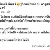 แต่ก็ยังมีกระแสสังคมโซเชียลที่เข้ามาแสดงความคิดเห็นด้านลบ ตนก็ยืนยันว่าหลังจากกลับมาจาก กทม. มาถึงพื้นที่จังหวัดร้อยเอ็ด ก็มากักตัวที่รีสอร์ตแห่งหนึ่งในจังหวัดหวัดร้อยเอ็ดทันที จนได้รับผลตรวจเลือดจึงเข้ารับการรักษาที่โรงพยาบาลอย่างเร่งด่วน แสดงความรับผิดชอบต่อสังคมอย่างดี ตนป้องกันตัวเองและไม่ได้ไปพบปะผู้คน ก่อนจะแยกมากักตัวที่รีสอร์ตเพื่อรอฟังผลเลือด จึงอยากให้สังคมโซเชียลช่วยเห็นใจด้วย