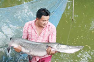 สอบถามนายปทุม ไวยกันญา อายุ 52 ปี อยู่บ้านเลขที่ 26 ม.8 ต.บ้านสร้าง อ.บางปะอิน จ.พระนครศรีอยุธยา เปิดเผยว่า วันนี้เป็นวันหยุด จึงชวนเพื่อนๆ รวม 4 คน ออกไปหาปลา โดยนำแหจำนวน 4 ปากไปที่บริเวณบึงขนาดใหญ่ประมาณ 20 ไร่ ตนเองเห็นมีฟองอากาศลอยขึ้นมาที่ริมบ่อ จึงทอดแหลงไป พบว่าปลาดิ้นแรงมาก กลัวว่าปลาใหญ่ตัวนี้จะดิ้นหลุดไปได้ จึงลงไปในน้ำ ก็ถูกกัดที่ต้นขาขวาจนกางเกงขาด เลยเรียกเพื่อนๆ ให้มาช่วยกันจับ โดยใช้แหทอดคลุมซ้ำ ช่วยกันปล้ำลากขึ้นมาบนฝั่งอย่างทุลักทุเล พอนำขึ้นมาได้ต่างตกใจกันมาก พบหน้าตาประหลาดไม่เคยพบเคยเห็น จากนั้นช่วยกันจับใส่สวิง แบกมาปล่อยไว้ในบ่อน้ำที่บ้าน ห่างจากบึงบัวประมาณ 1 ก.ม. แต่ปลาก็ตายลงอย่างรวดเร็ว