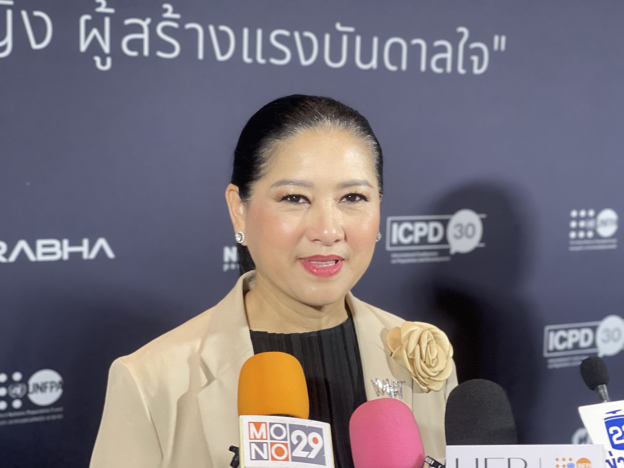 "ก็แฮปปี้ดีค่ะ เพื่อนๆ ก็ไปกันอะไรกัน ปีนี้ก็ซอล์ฟลง เป็นซิทดาวน์ดินเนอร์ แบบเว้นระยะห่าง โซเชียลดิสแทนซิ่ง มันก็จะมีกันไกลๆ นิดนึง เราก็ไม่ให้เสียชื่อเนอะ เราก็จะลดลงไม่ได้ จะต้องเสมอตัวไม่ก็ดีขึ้น”