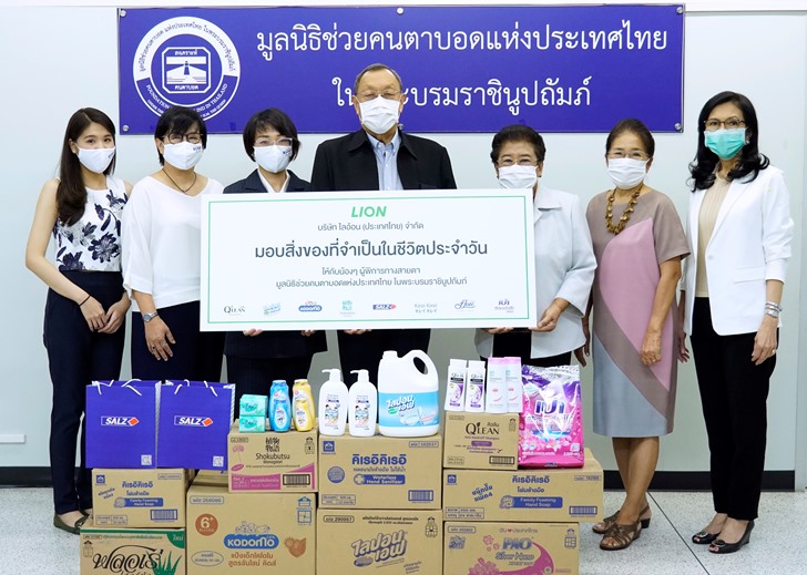 เมื่อวันที่ 5 ตุลาคม 2563 คุณจิดาภา นิมิตมงคล (ที่ 3 จากขวา) ผู้จัดการผลิตภัณฑ์ดูแลสุขภาพช่องปากซอลส์ (SALZ) บริษัท ไลอ้อน (ประเทศไทย) จำกัด พร้อมด้วยคุณปราง-กัญญ์ณรัณ วงศ์ขจรไกล, คุณมิน-พีชญา วัฒนามนตรี และคุณอาเล็ก-ธีรเดช เมธาวรายุทธ พรีเซ็นเตอร์ยาสีฟันซอลส์ ร่วมมอบเงินบริจาค จำนวนเงิน 200,000 บาท จากกิจกรรม 'SALZ ส่งความห่วงใย เคียงข้างคนไทย' ที่ให้คนไทยได้มีส่วนร่วมในการแชร์ภาพรอยยิ้มเปลี่ยนเป็นเงินบริจาค เพื่อส่งเสริมการศึกษากับน้อง ๆ ผู้พิการทางสายตา โดยมอบเงินบริจาคให้แก่ คุณขรรค์ ประจวบเหมาะ (ที่ 2 จากขวา) ประธานมูลนิธิช่วยคนตาบอดแห่งประเทศไทย ในพระบรมราชินูปถัมภ์