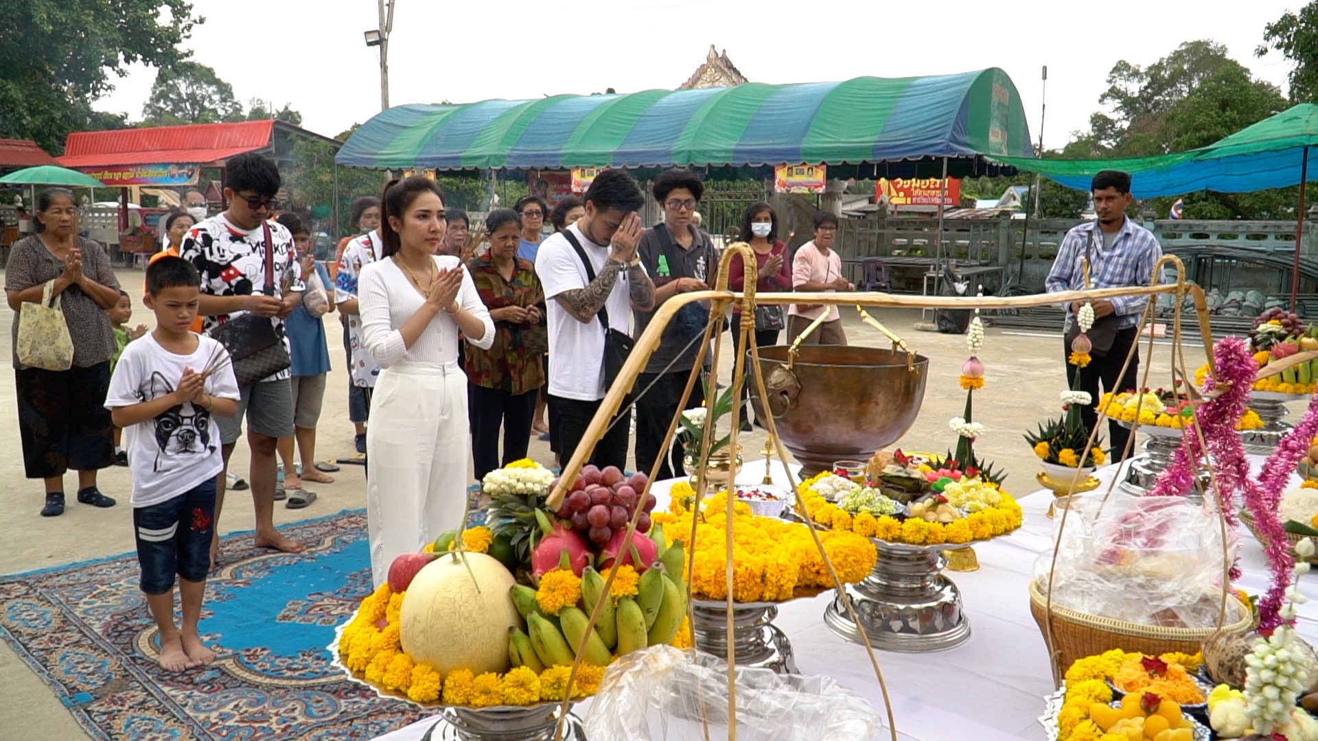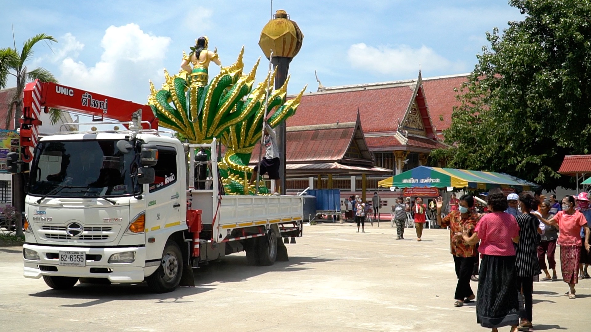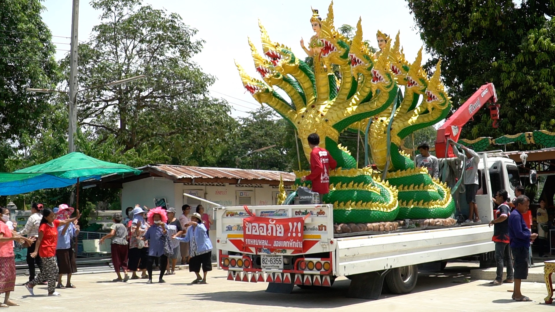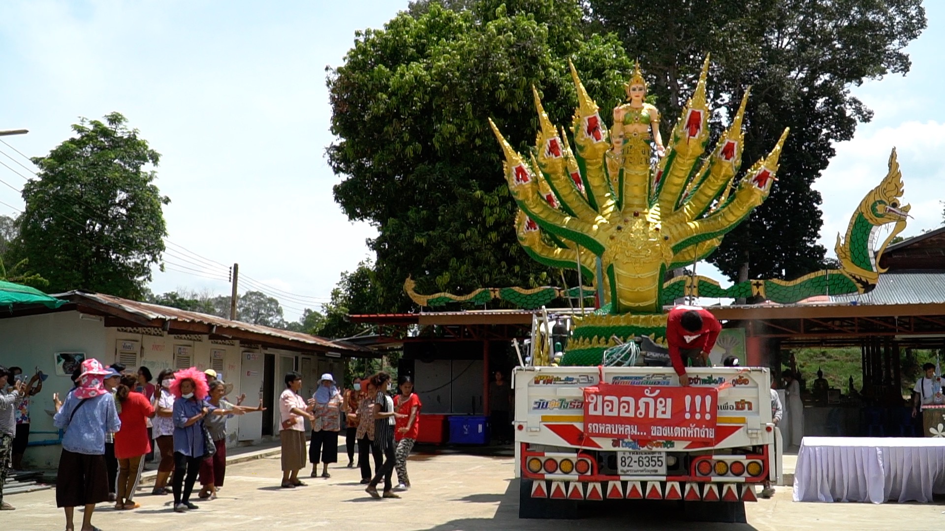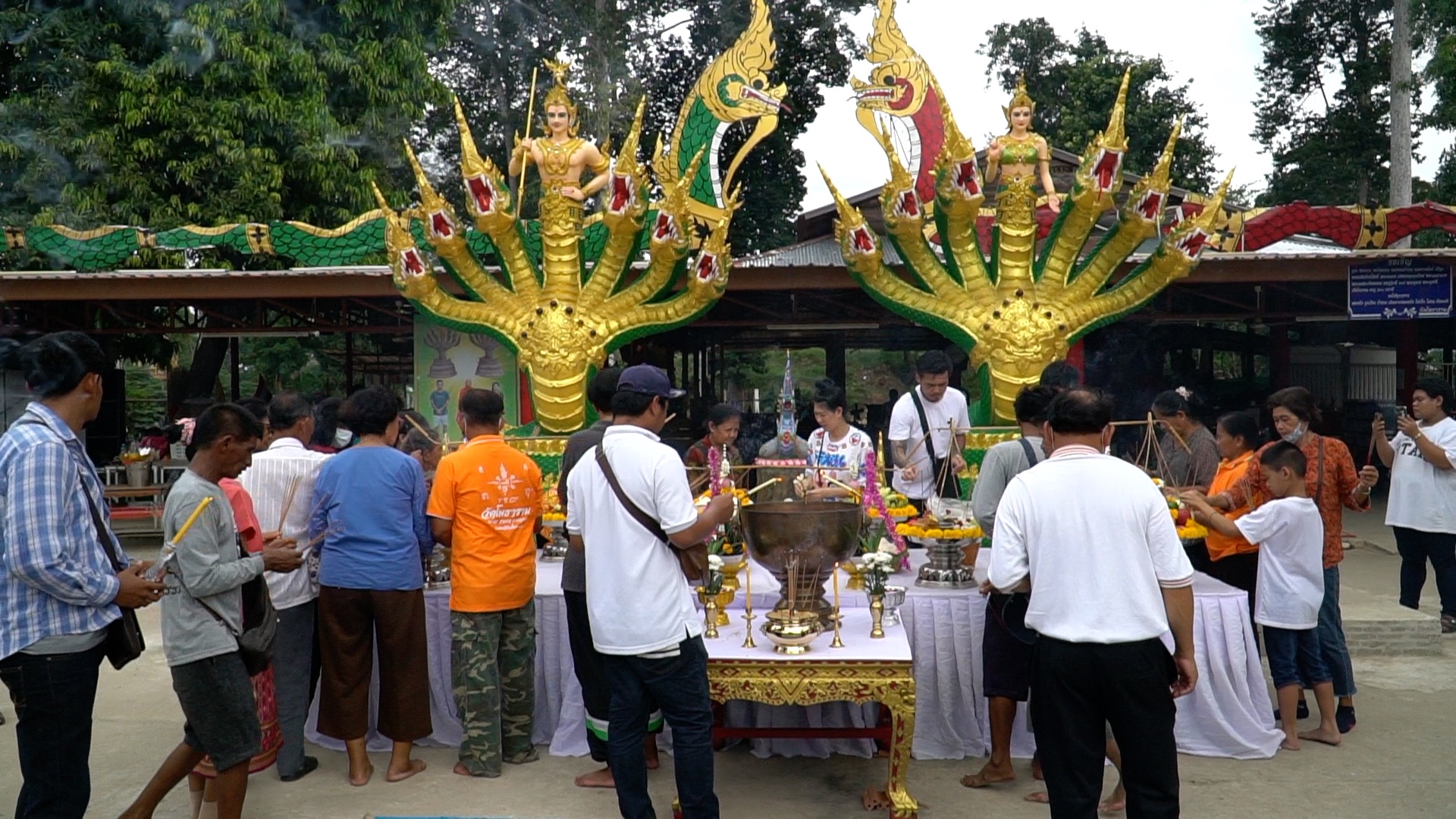 คู่รักแก้บนถวาย "พญานาค" สูง 4 เมตร คอหวยแห่ส่องทะเบียนรถ-ขันน้ำมนต์