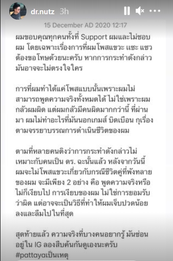 ทั้งนี้ ในไอจีสตอรี่ที่ ดร.นัท ได้โพสต์ไปนั้นปิดท้ายด้วยประโยคสุดแซ่บที่ว่า "ความจริงที่บางคนอยากรู้มันซ่อนอยู่ในไอจี ลองสืบค้นกันดูนะครับ"