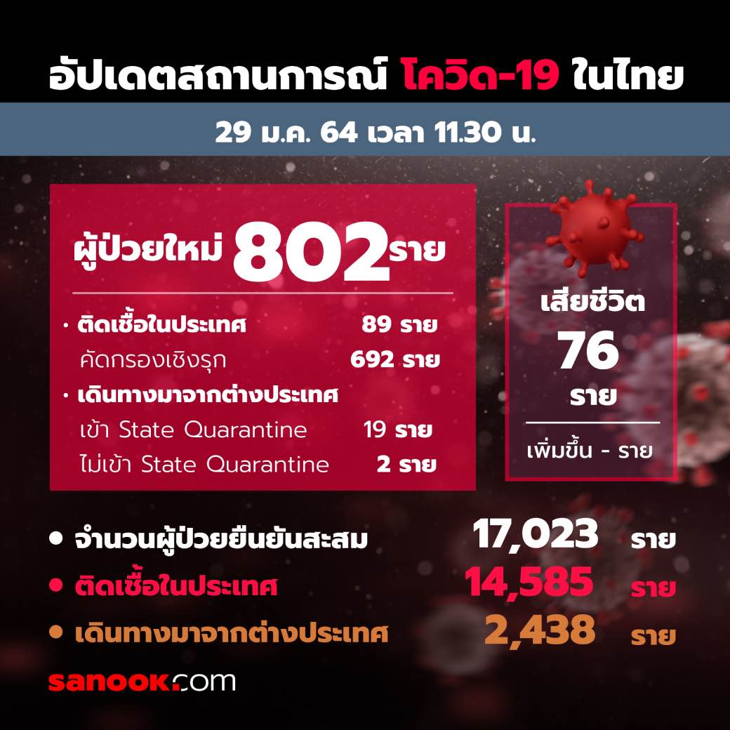 รายละเอียดผู้ป่วยโควิด-19 รายใหม่ วันที่ 29 ม.ค. 2564 จำนวน 802 ราย มีดังนี้