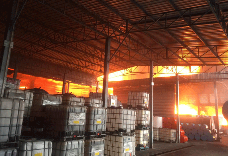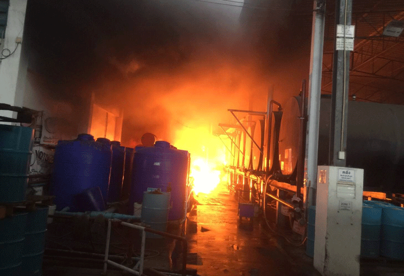 ระทึก! ไฟไหม้โรงงานน้ำมันหล่อลื่น ในเขาย้อย เพชรบุรี คนถูกไฟคลอกเจ็บ 1 ราย