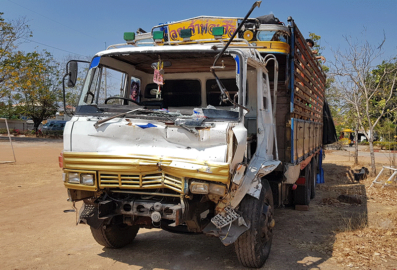 พ.ต.อ.คำพล โนนุช ผกก.สภ.แก้งคร้อได้รับแจ้งจากศูนย์วิทยุ 191 ว่า มีรถบรรทุก 6 ล้อชนท้ายกับรถรับส่ง-นักเรียนและรถของประชาชนรวมทั้งหมด 3 คันมีผู้ได้รับบาดเจ็บหลายๆ บริเวณแยกไฟแดง ก่อนเข้าตัวอำเมืองแก้งคร้อ จึงรุดไปตรวจสอบที่เกิดเหตุ พร้อมกับพ.ต.ต.โฆสน นิ่มพิลา สว.(สอบสวน) เจ้าหน้าที่กู้ภัย หน่วยกู้ชีพโรงพยาบาลแก้งคร้อ