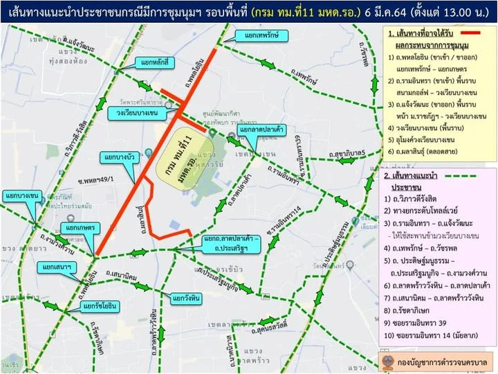 บช.น. แนะเส้นทางจราจรโดยรอบ ราบ 11 เลี่ยง #ม็อบ6มีนา ตั้งแต่บ่ายนี้