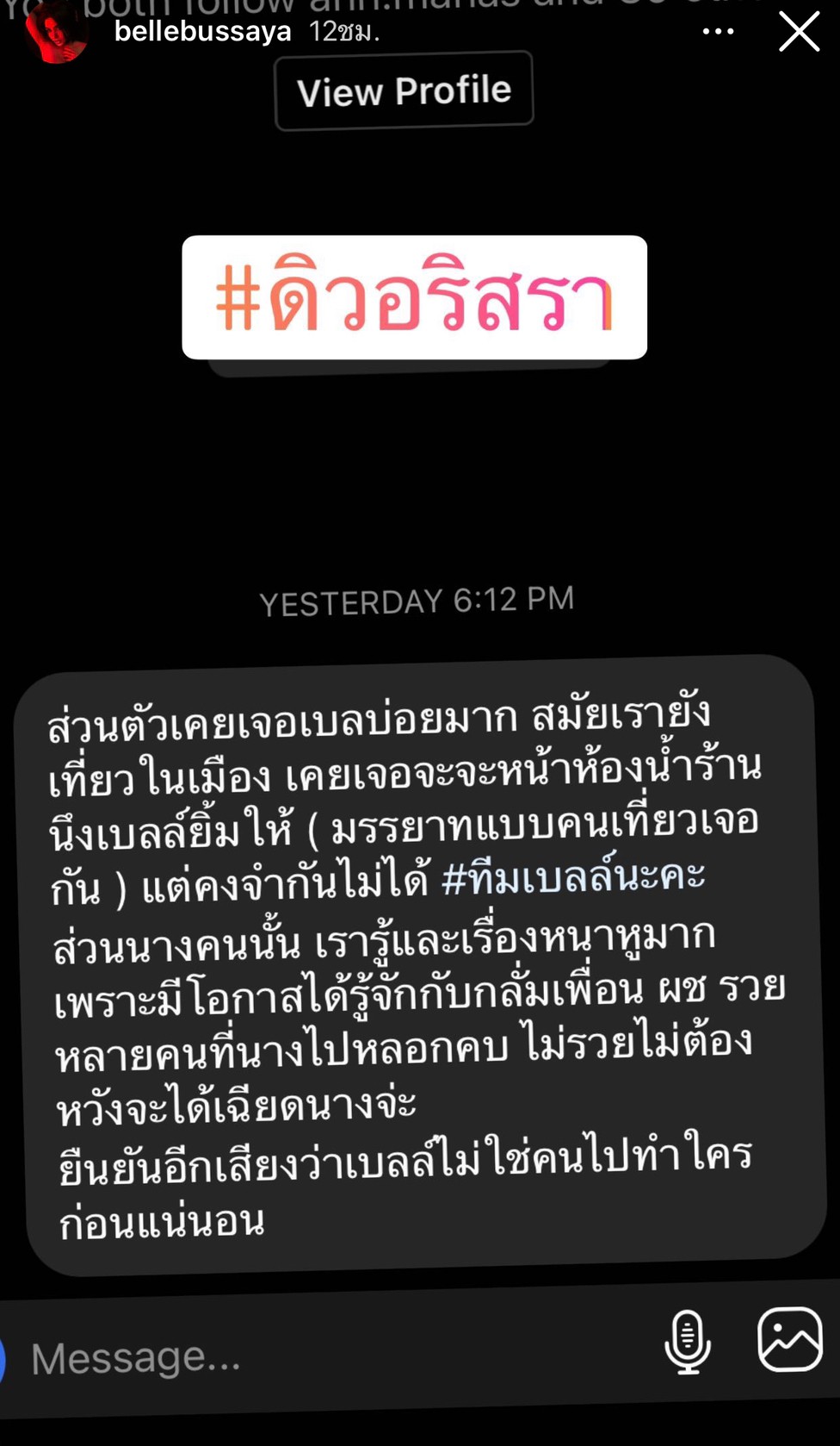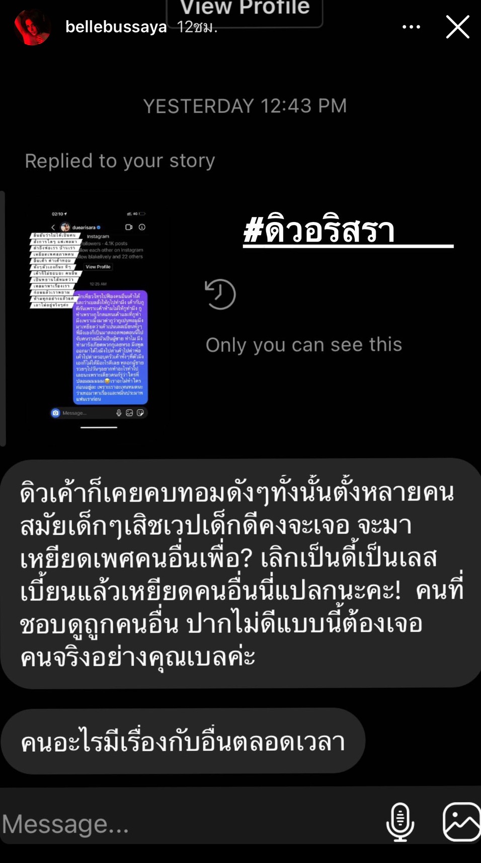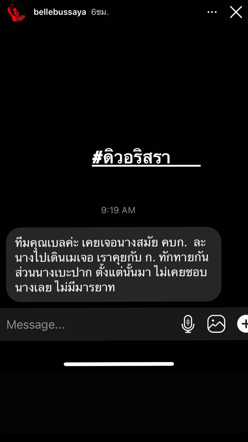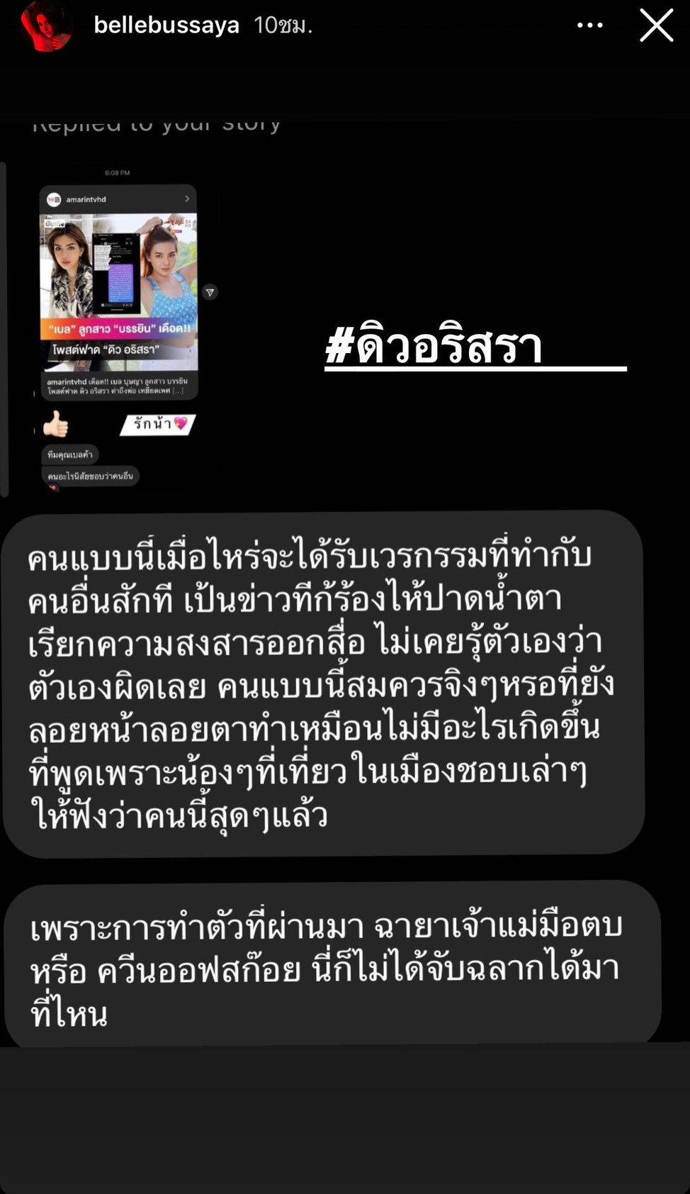 "เบล บุษยา" แฉ "ดิว อริสรา" อีกยก แคปข้อความโพสต์รัวๆ ใครปลอมเตรียมแถเบล บุษยา ลูกสาวบรรยิน ออกมาโพสต์แฉ ดิว อริสรา อีกยก ลั่นให้รอฟังคนปลอมเตรียมแถให้ถูก