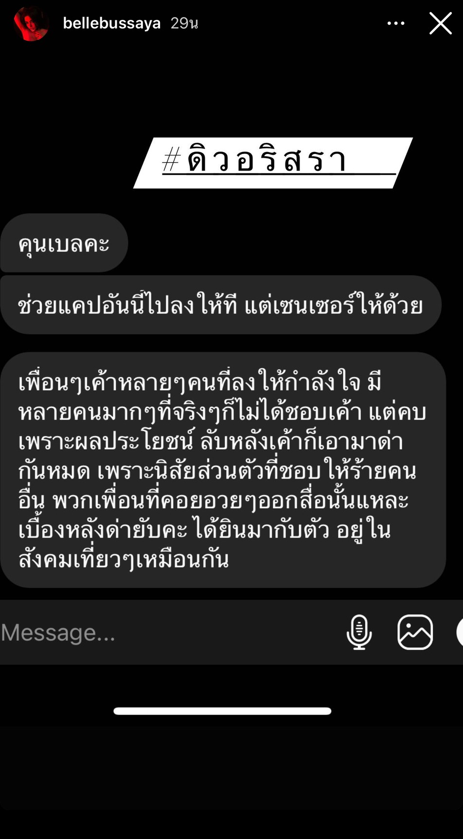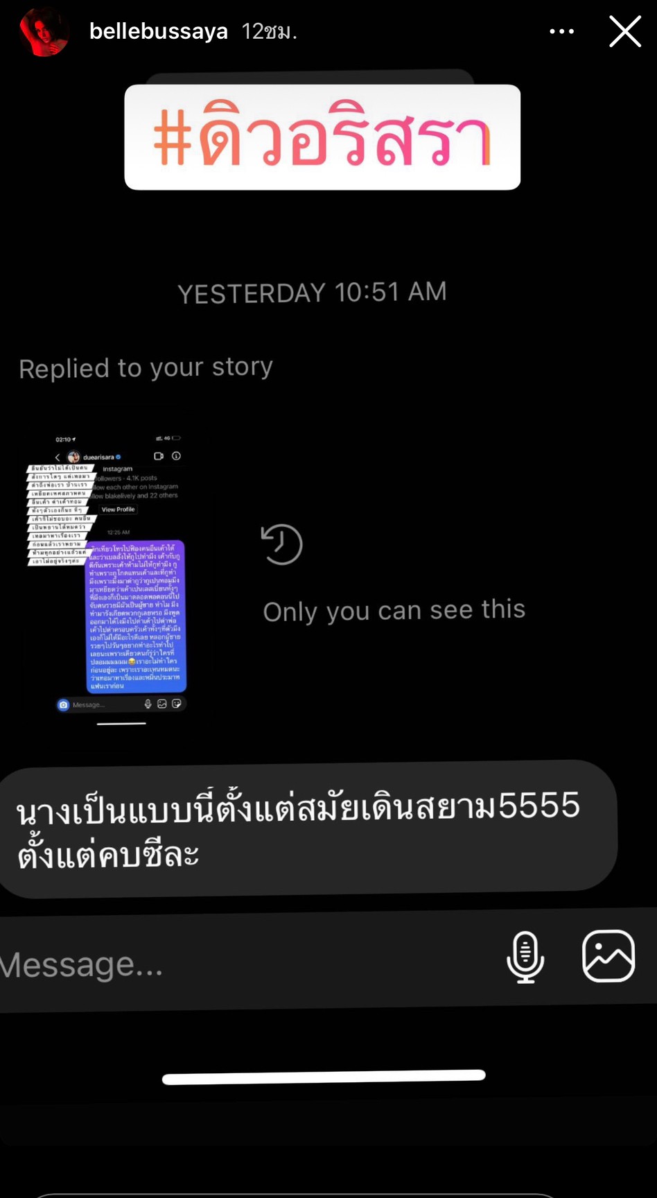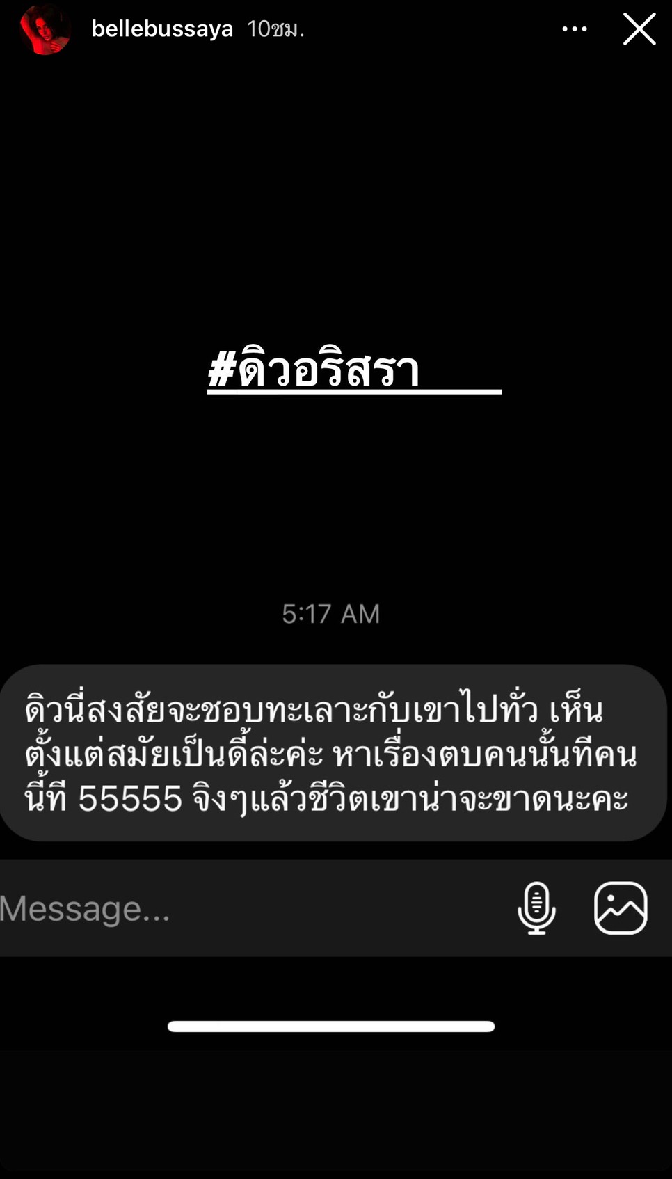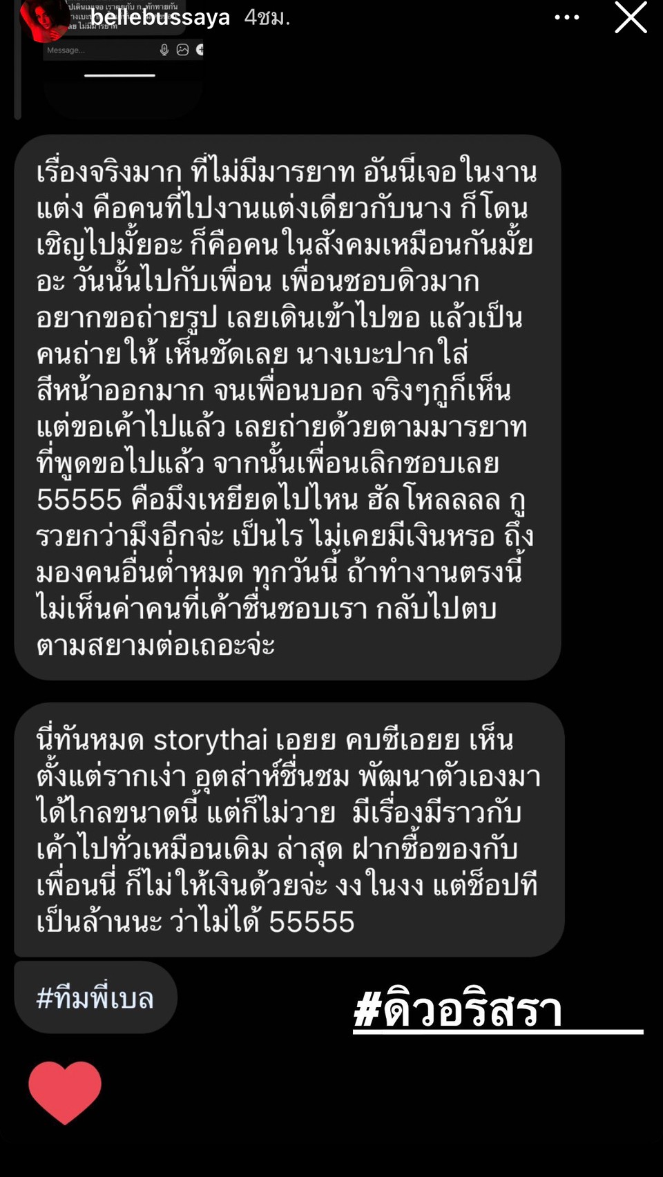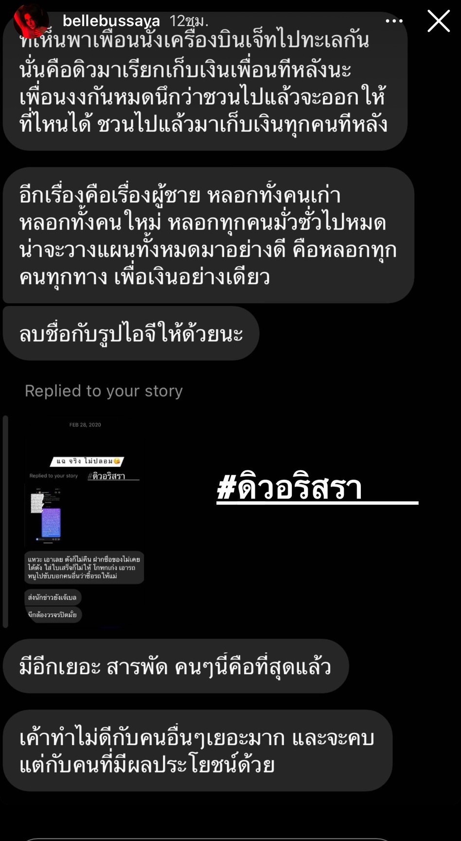 "เบล บุษยา" แฉ "ดิว อริสรา" อีกยก แคปข้อความโพสต์รัวๆ ใครปลอมเตรียมแถเบล บุษยา ลูกสาวบรรยิน ออกมาโพสต์แฉ ดิว อริสรา อีกยก ลั่นให้รอฟังคนปลอมเตรียมแถให้ถูก