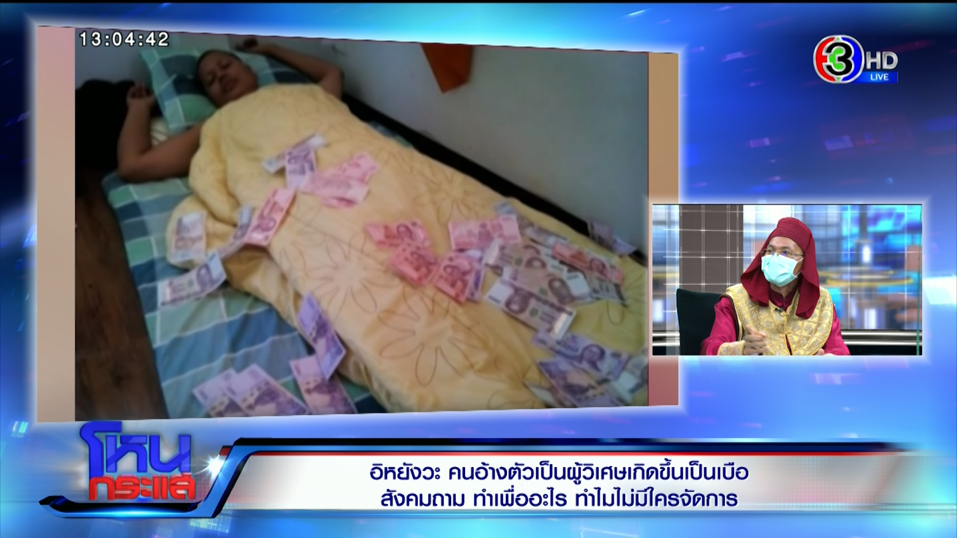 หลอกให้หลงเชื่อว่าเรามีอิทธิฤทธิ์ ให้คนมาทำบุญ ภาพที่อาจารย์นอนหลับแล้วฝัน ตื่นมามีเงินเต็มตัว นี่อะไร?