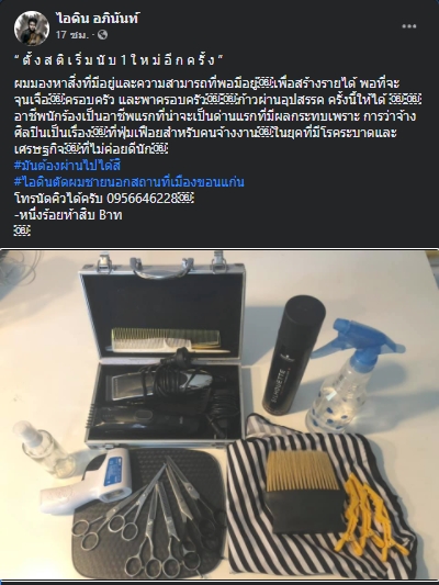ซึ่งตอนนี้ไอดินก็ไม่อยู่เฉยลุกขึ้นมาหาเลี้ยงชีพด้วยการลุกขึ้นมาใช้ความสามารถที่มีรับตัดผมนอกสถานที่ในตัวเมือง จ.ขอนแก่น ท่ามกลางกำลังใจจากเพื่อนๆ และแฟนๆ ที่แห่เข้ามาส่งกำลังใจกันล้นหลาม