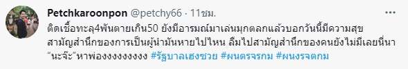 "ติดเชื้อทะลุ 4 พันตายเกิน 50 ยังมีอารมณ์มาเล่นมุขตลกแล้วบอกวันนี้มีความสุข สามัญสำนึกของการเป็นผู้นำมันหายไปไหน ลืมไปสามัญสำนึกของคนยังไม่มีเลยนี่นา “นะจ๊ะ” หาพ่_งงงงงงงงงง #รัฐบาลเฮงซวย #ผนตรจรกม #ผนงรจตกม"