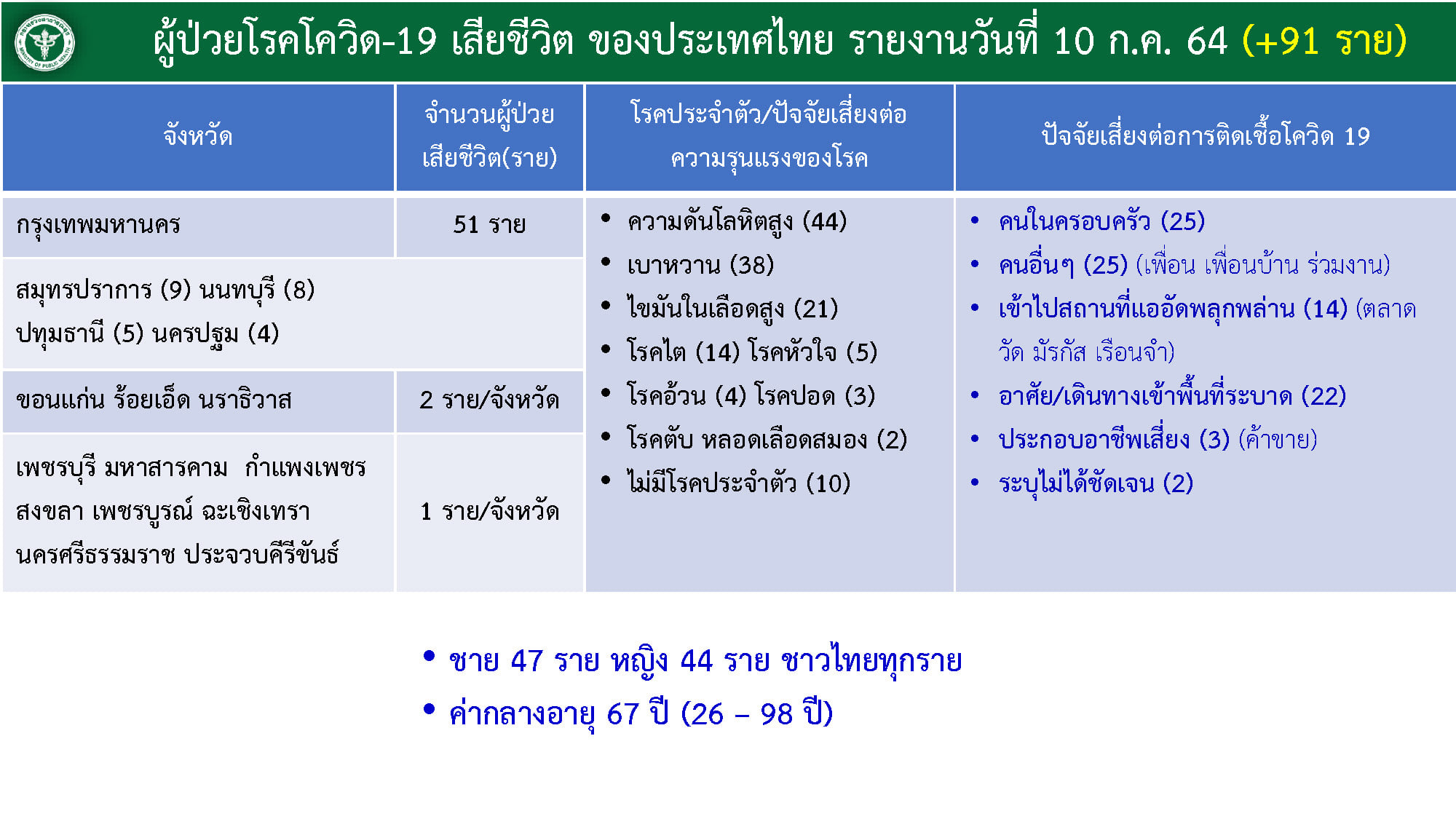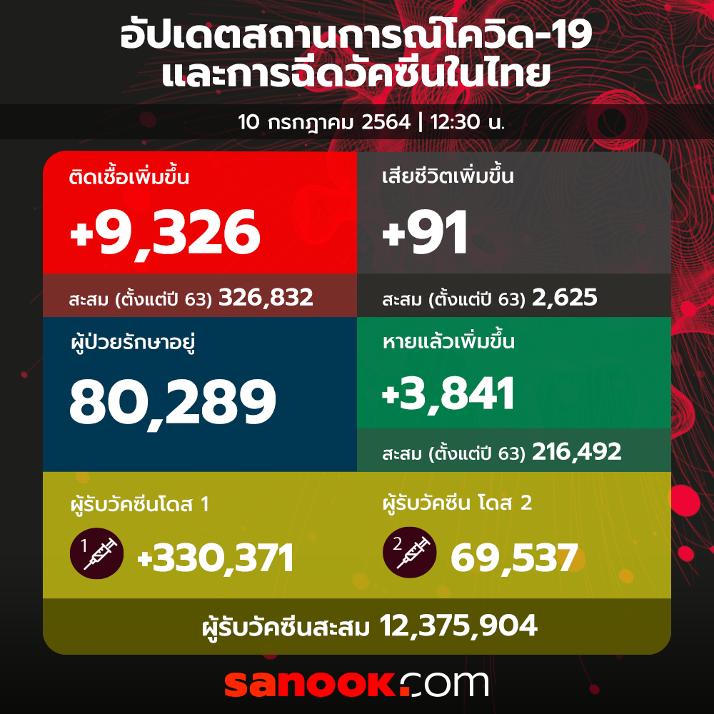 นิวไฮอีกรอบ! โควิดวันนี้ ไทยพบผู้ติดเชื้อเพิ่ม 9,326 ราย เสียชีวิต 91 ราย