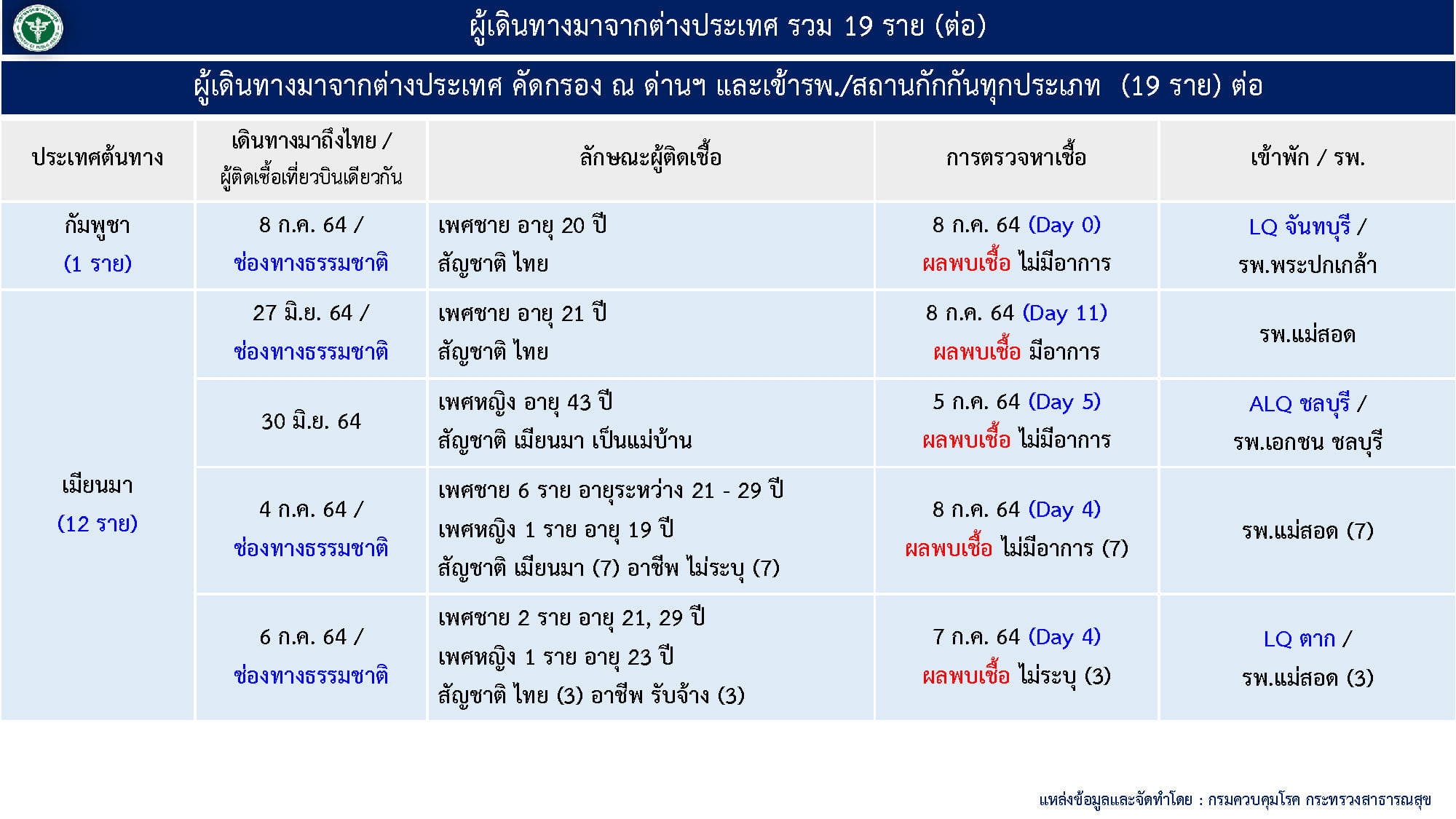 4.เดินทางมาจากต่างประเทศ และเข้า State Quarantine 19 ราย