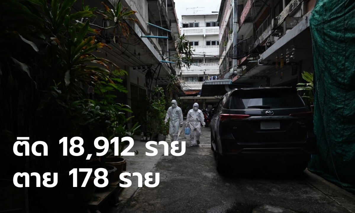 ล่าสุด สถานการณ์การแพร่ระบาดของโรคติดเชื้อไวรัสโคโรนา 2019 (COVID-19) หรือ โควิด-19 ในไทยวันนี้ พบผู้ติดเชื้อรายใหม่เพิ่ม 18,912 ราย แบ่งเป็นผู้ติดเชื้อใหม่ 18,102 ราย และผู้ติดเชื้อในเรือนจำ 810 ราย ยอดติดเชื้อรวมระลอกเมษายน 568,424 ราย รวมยอดติดเชื้อสะสม 597,287 ราย เสียชีวิตเพิ่ม 178 ราย เสียชีวิตสะสม 4,857 ราย หายป่วยเพิ่ม 10,750 ราย รวมหายป่วยสะสม ระลอกเมษายน 364,494 ราย กำลังรักษา 200,510 ราย