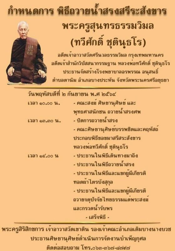 สำหรับกำหนดการพิธีถวายน้ำสรงสรีระสังขาร หลวงพ่อเสือดำ วันที่ 2 ก.ย.64 มีดังนี้