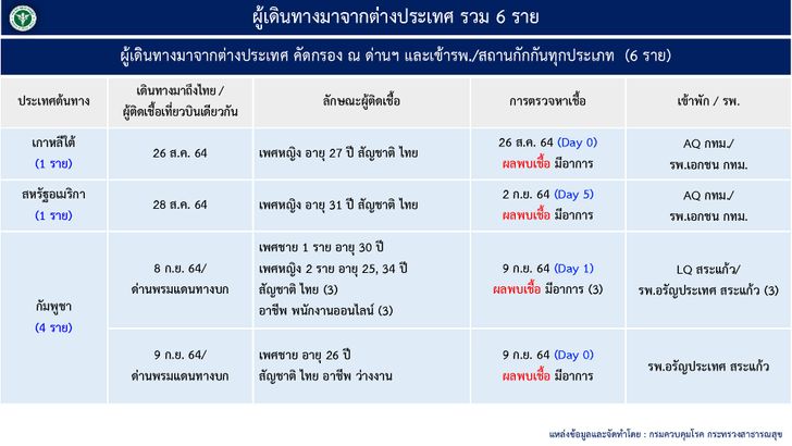 4.เดินทางมาจากต่างประเทศ และเข้า State Quarantine 6 ราย