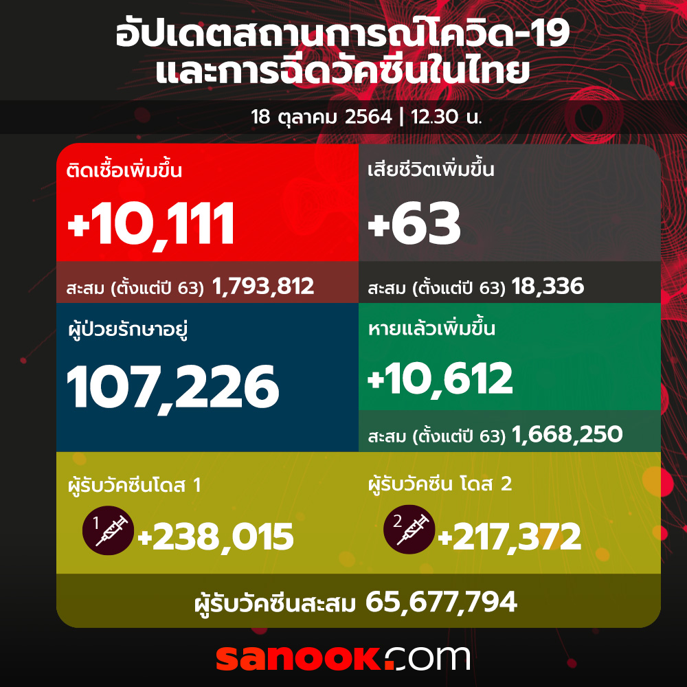 รายละเอียดผู้เสียชีวิตของประเทศไทยวันจันทร์ที่ 18 ตุลาคม 2564 จำนวน 63 ราย