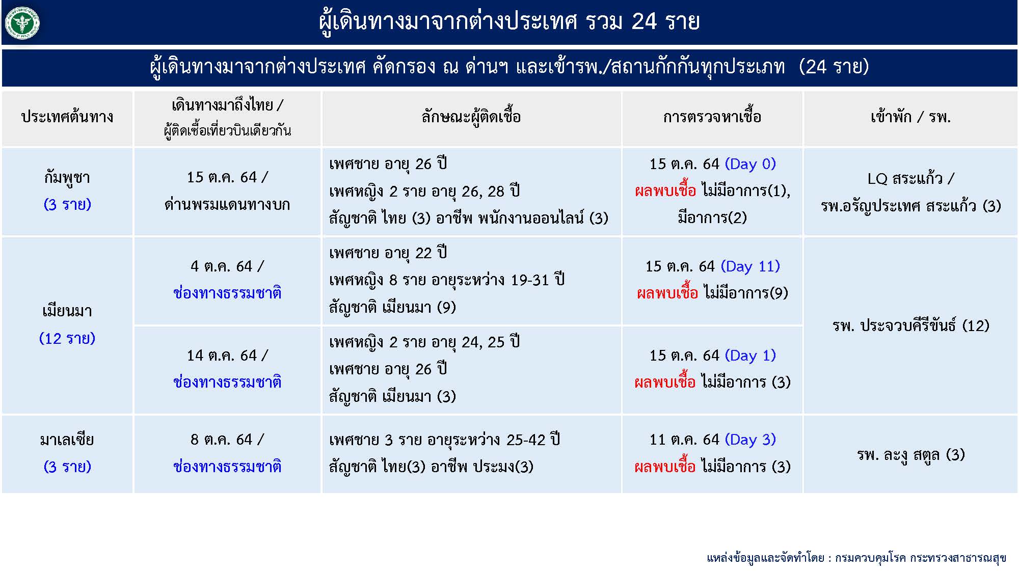 4. เดินทางมาจากต่างประเทศ และเข้า State Quarantine 24 ราย