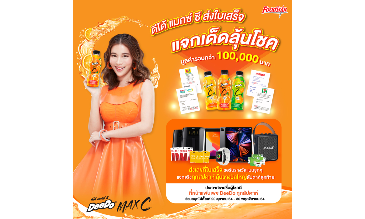 ร่วมสนุกกับ #DeeDoMaxC ง่ายๆ เพียงส่งเลขใบเสร็จของคุณที่มีรายการซื้อดีโด้ แมกซ์ ซี จากร้านค้าที่ร่วมรายการ จะกี่บาทก็ได้ กี่ใบเสร็จก็ได้ ส่งมาร่วมสนุก มีสิทธิ์ลุ้นรับของรางวัลประจำสัปดาห์ และทุกใบเสร็จมีสิทธิ์ลุ้นรางวัลใหญ่ในสัปดาห์สุดท้าย มูลค่าของรางวัลรวมตลอดกิจกรรมกว่า 100,000 บาท