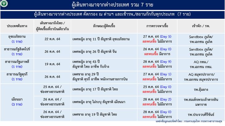 4. เดินทางมาจากต่างประเทศ และเข้า State Quarantine 7 ราย