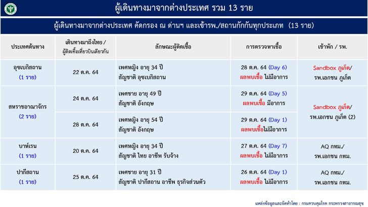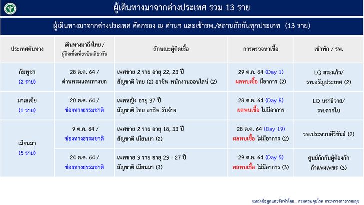 4. เดินทางมาจากต่างประเทศ และเข้า State Quarantine 13 ราย