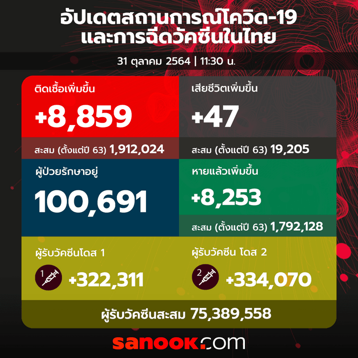 รายละเอียดผู้เสียชีวิตของประเทศไทยวันอาทิตย์ที่ 31 ตุลาคม 2564 จำนวน 47 ราย