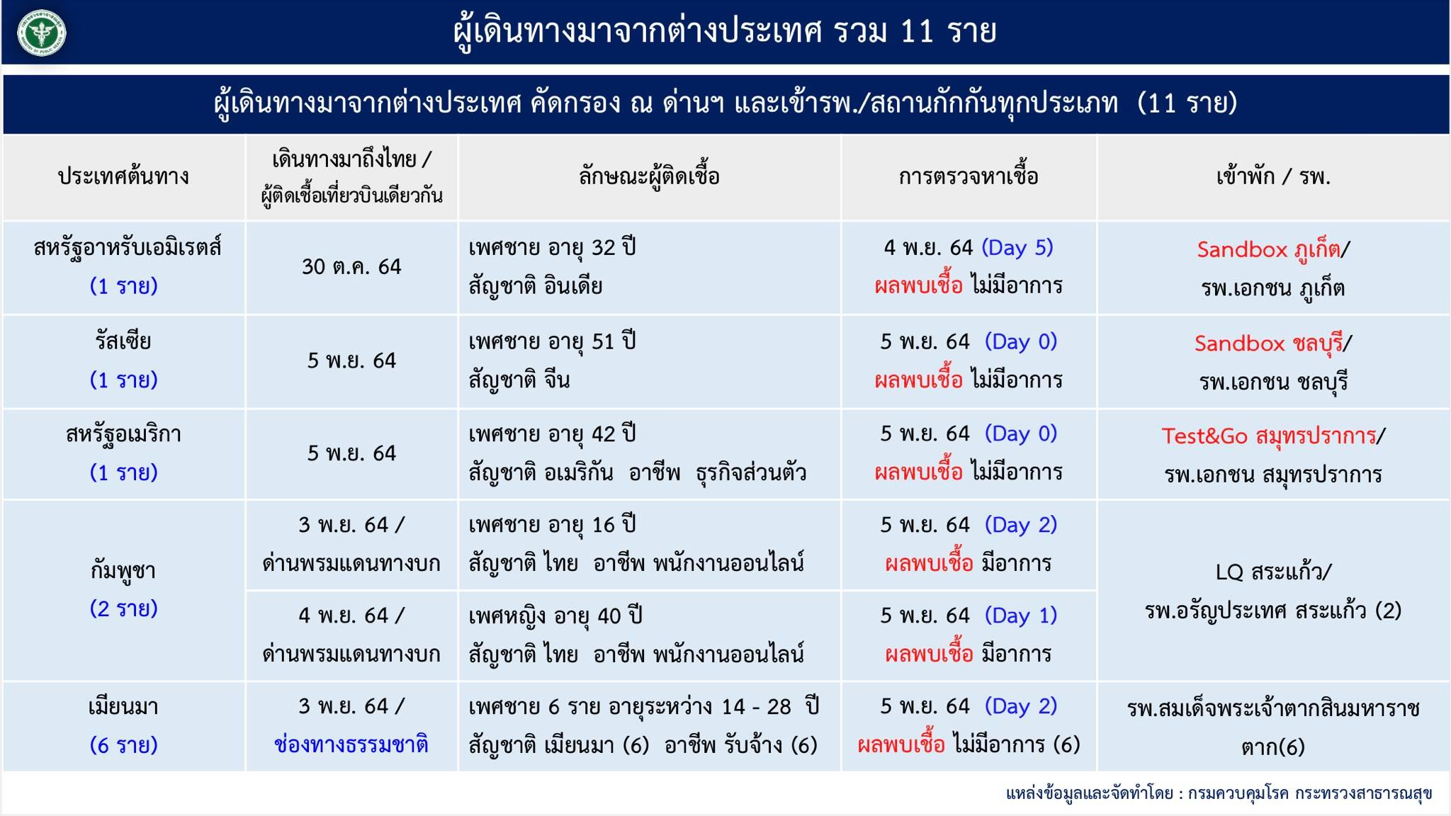 - ผู้ป่วยมาจากต่างประเทศ 11 ราย