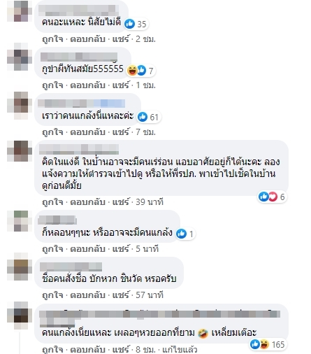ทั้งนี้ โพสต์ดังกล่าวมีคนเข้ามาแสดงความคิดเห็นมากมาย ส่วนใหญ่ต่างบอกเป็นเสียงเดียวกันว่าผู้โพสต์น่าจะถูกคนกลั่นแกล้ง ขณะที่บางรายก็มองว่าในบ้านหลังดังกล่าวอาจจะมีคนเร่ร่อนไปแอบอาศัยอยู่ ให้แจ้งความกับตำรวจหรือให้ รปภ. พาเข้าไปตรวจสอบในบ้านดู