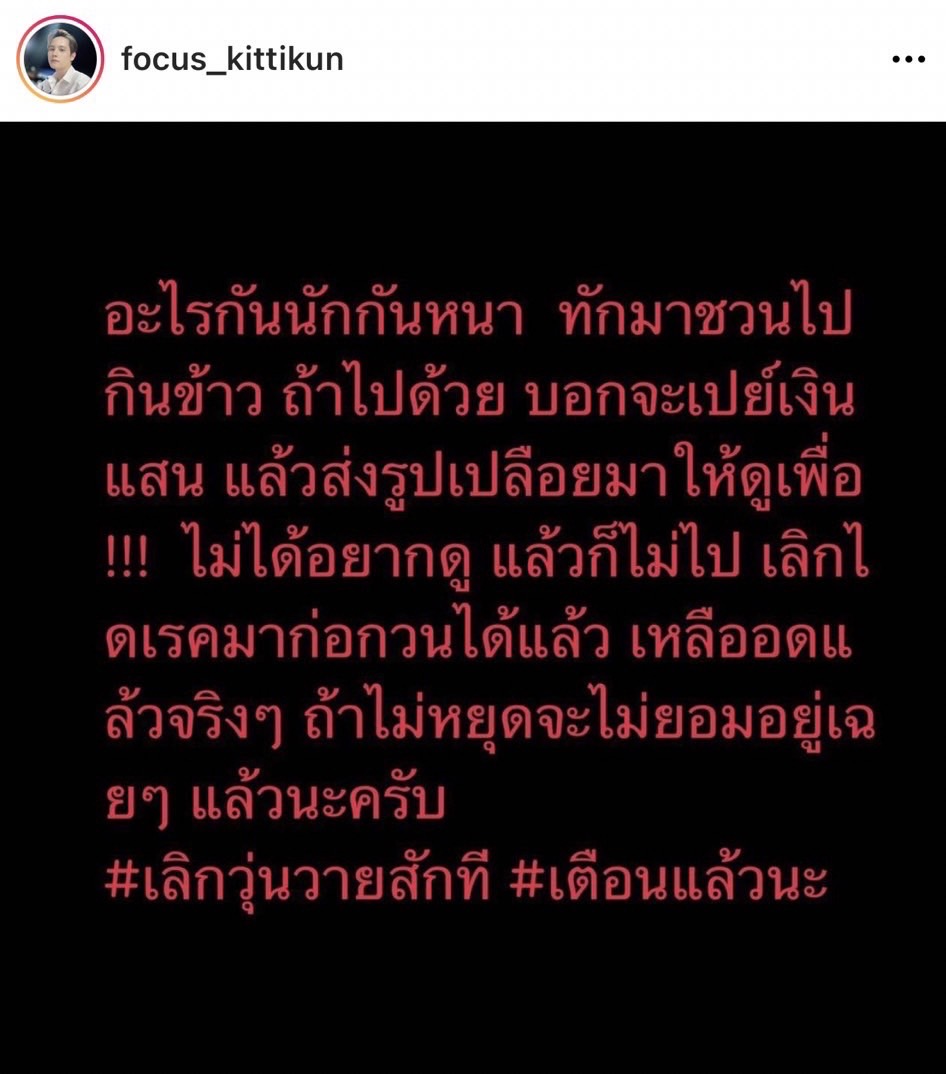 โดย โฟกัส ถึงกับหัวร้อนโพสต์ลงในอินสตาแกรม @focus_kittikun ข้อความว่า