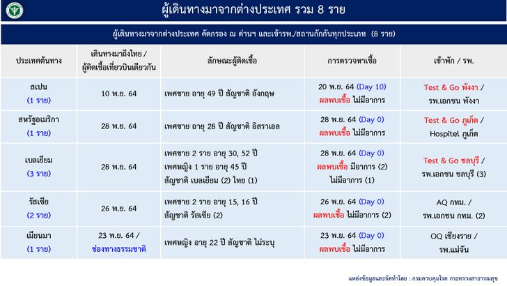 - ผู้ป่วยมาจากต่างประเทศ 8 ราย