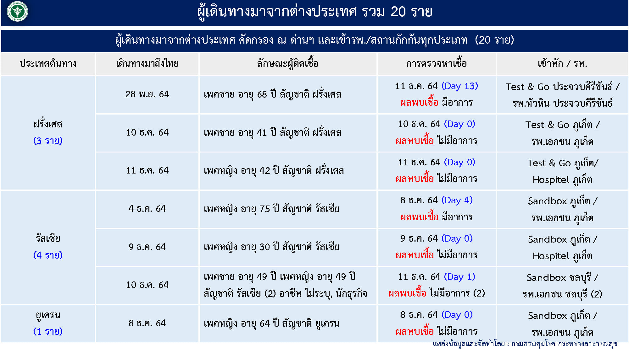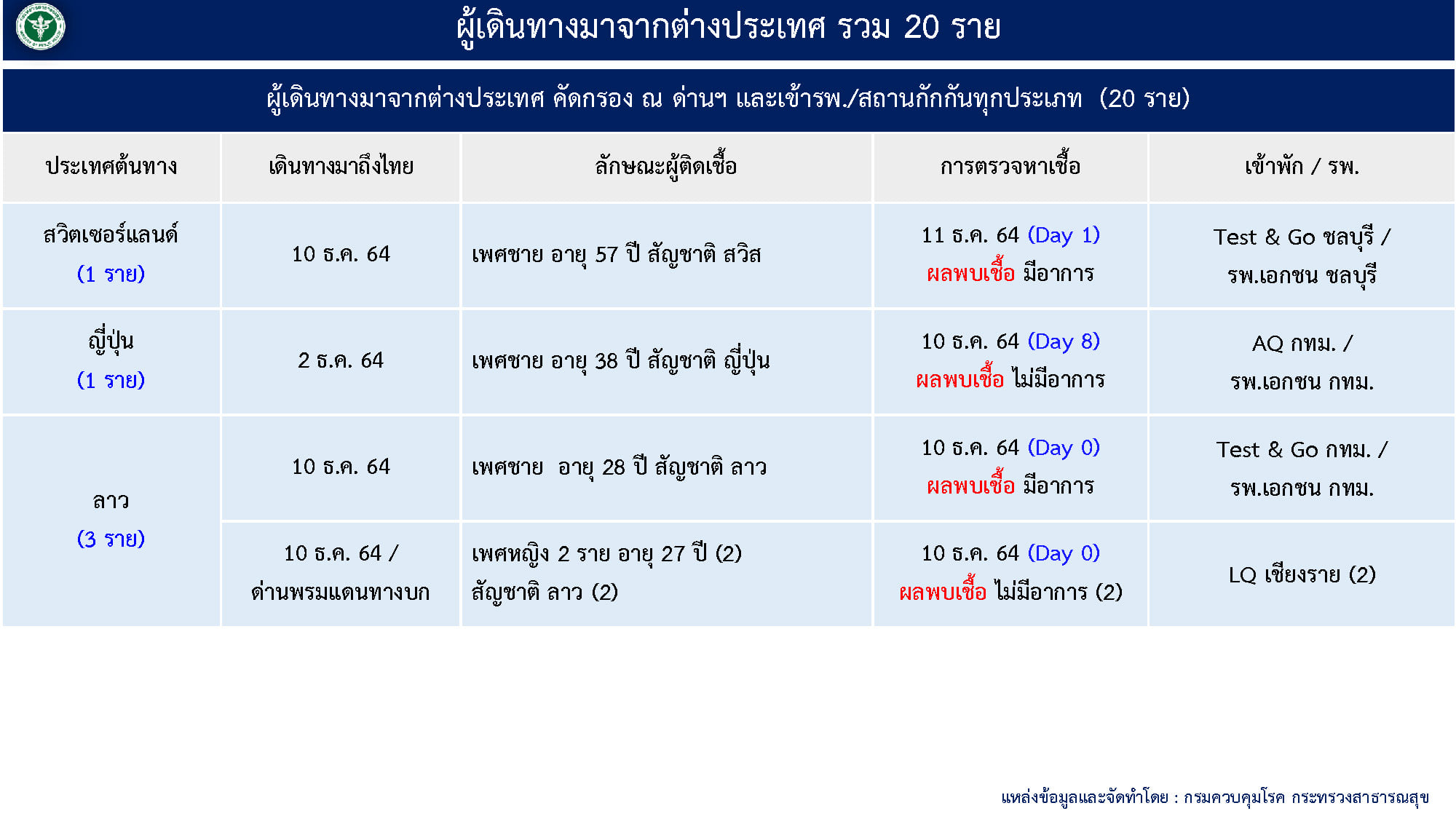 - ผู้ป่วยมาจากต่างประเทศ 20 ราย