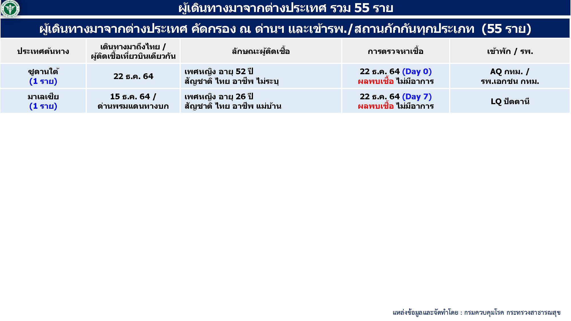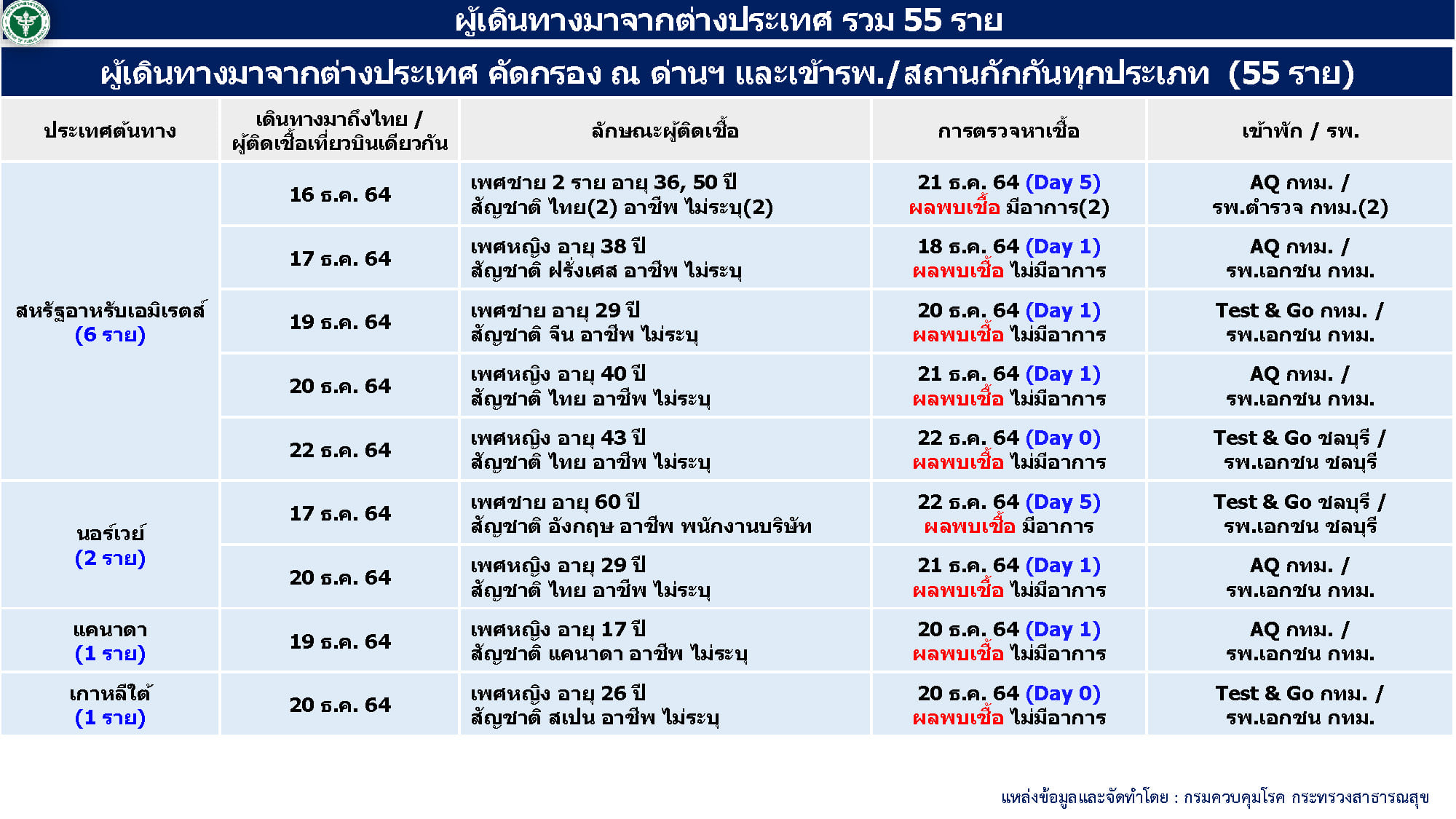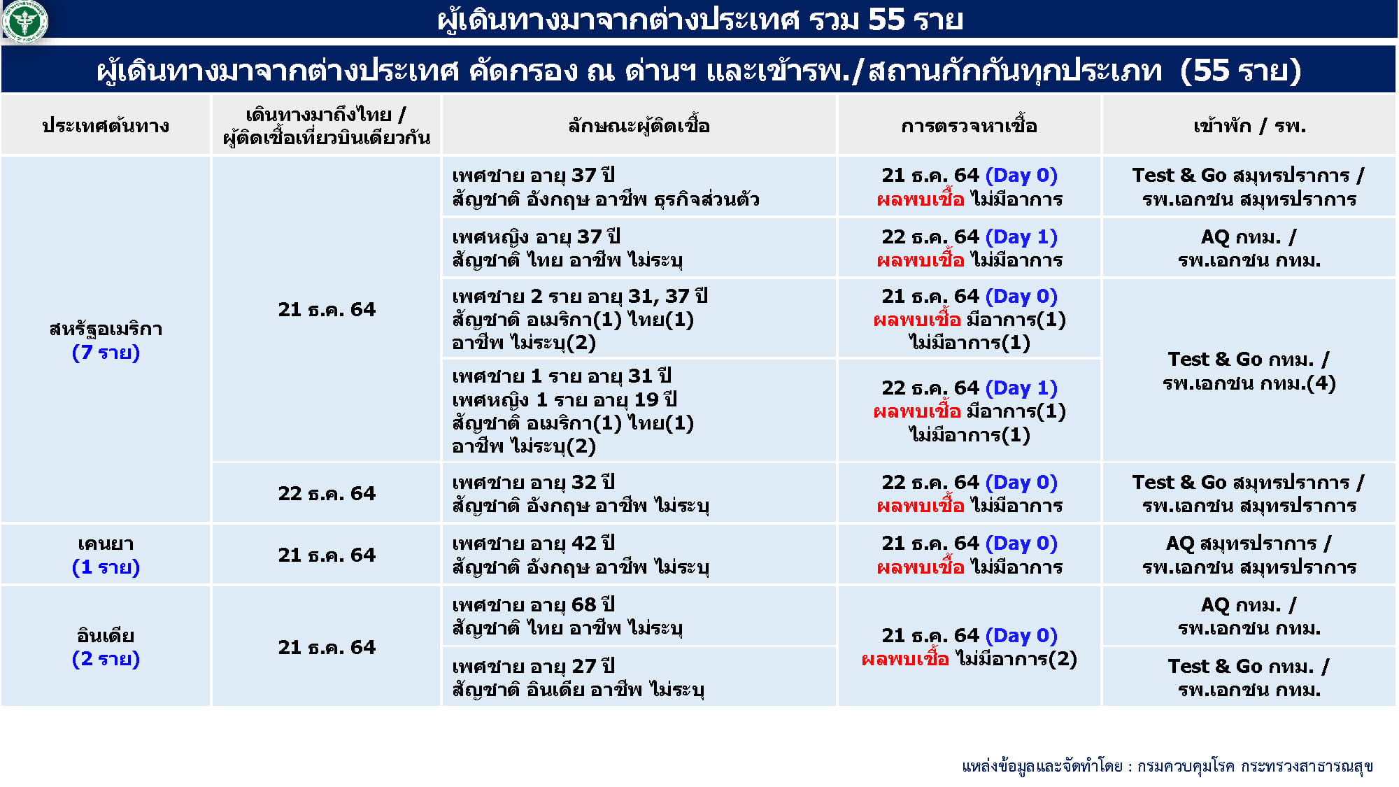 - ผู้ป่วยมาจากต่างประเทศ 55 ราย