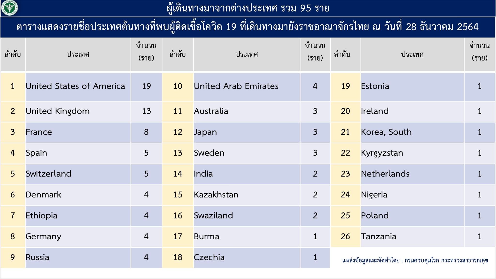 - ผู้ป่วยมาจากต่างประเทศ 95 ราย