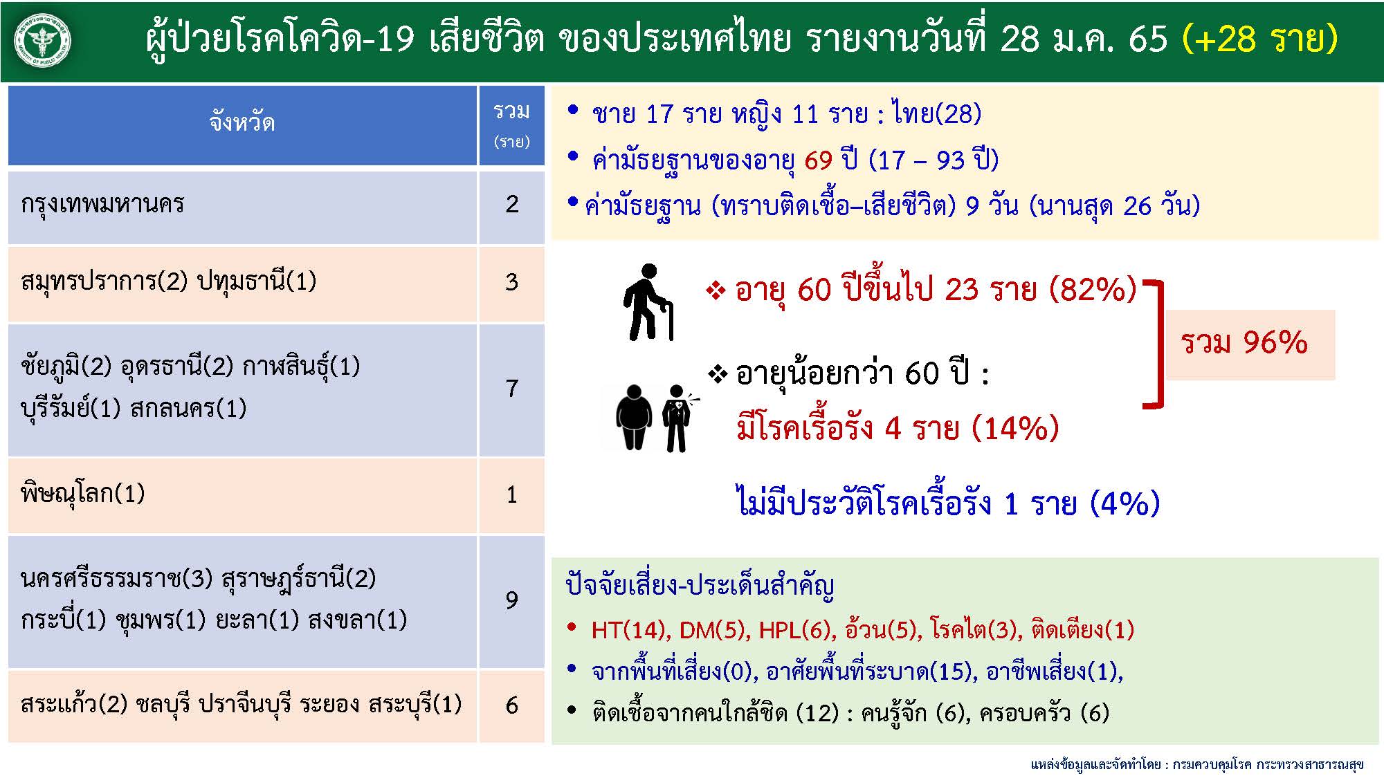 รายละเอียดผู้เสียชีวิตของประเทศไทย วันศุกร์ที่ 28 มกราคม 2565 จำนวน 28 ราย