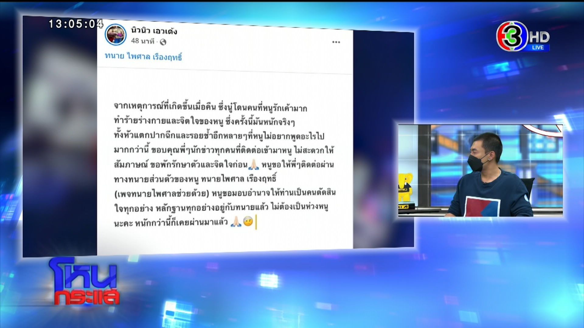 "นิวนิว" รับดอกไม้ทั้งน้ำตาหลัง "เติ้ล" โอบกอดบอกขอโทษและยอมรับผิดทั้งหมดนิวนิว เอวเด้ง ร่ำไห้ เติ้ล ธนพล มอบช่อดอกไม้ขอโทษ รู้สึกผิด ภาพตัด-จำอะไรไม่ได้ ขอบคุณรายการ เอ่ยปากอยากขอบวช
