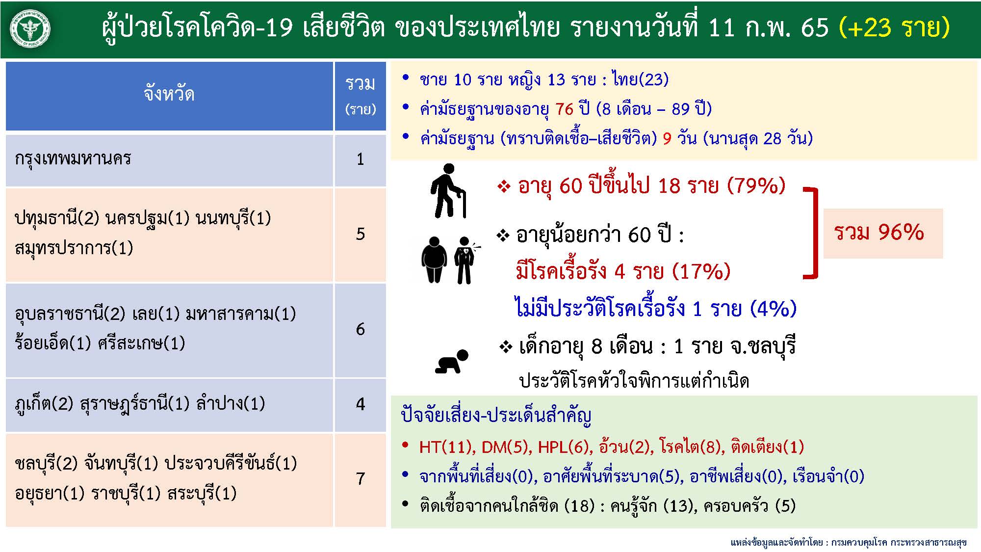 รายละเอียดผู้เสียชีวิตของประเทศไทย วันศุกร์ที่ 11 กุมภาพันธ์ 2565 จำนวน 23 ราย